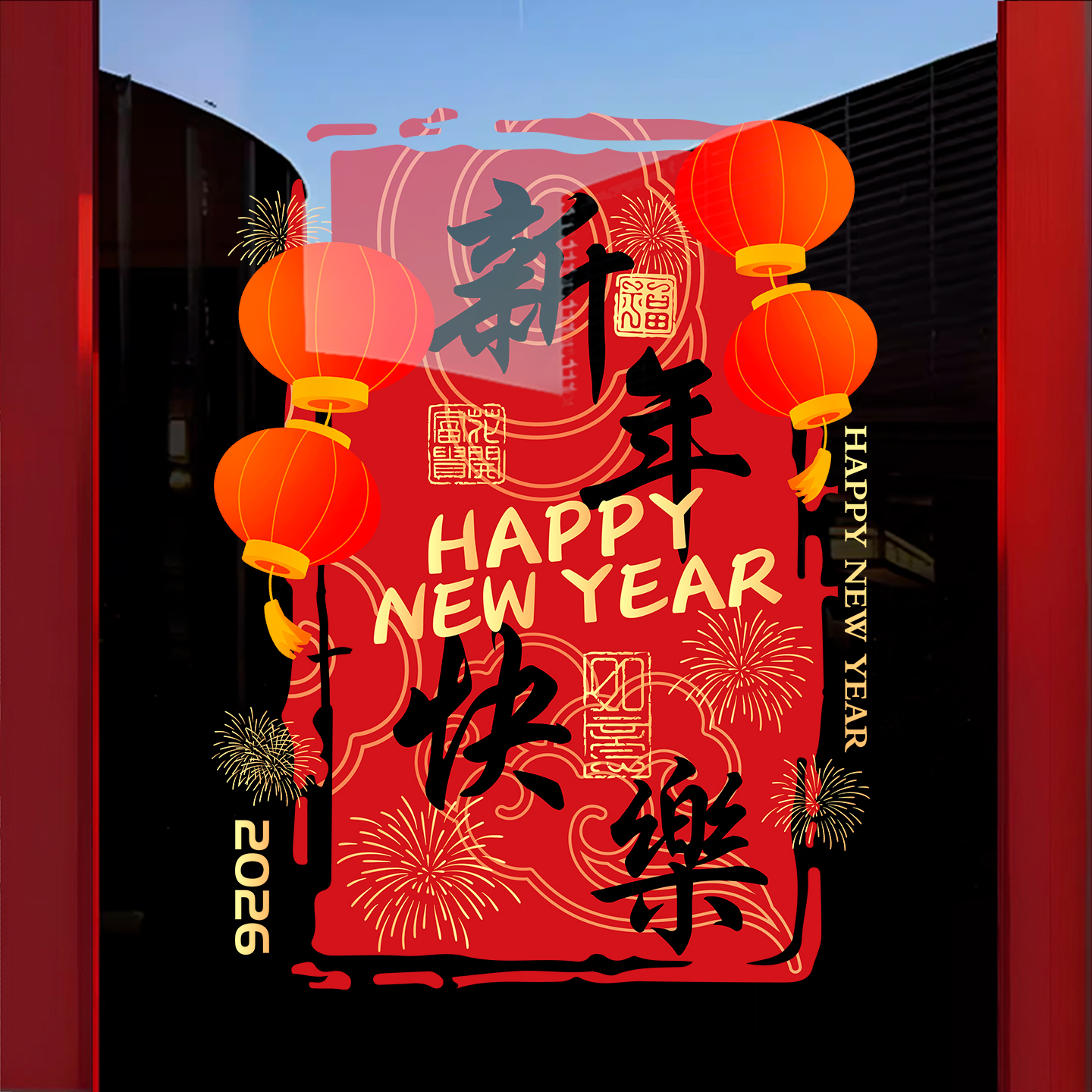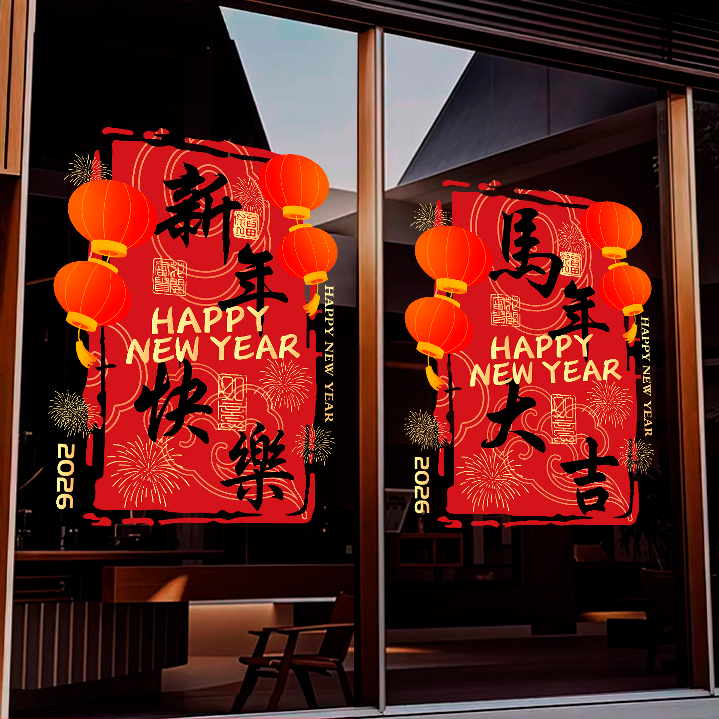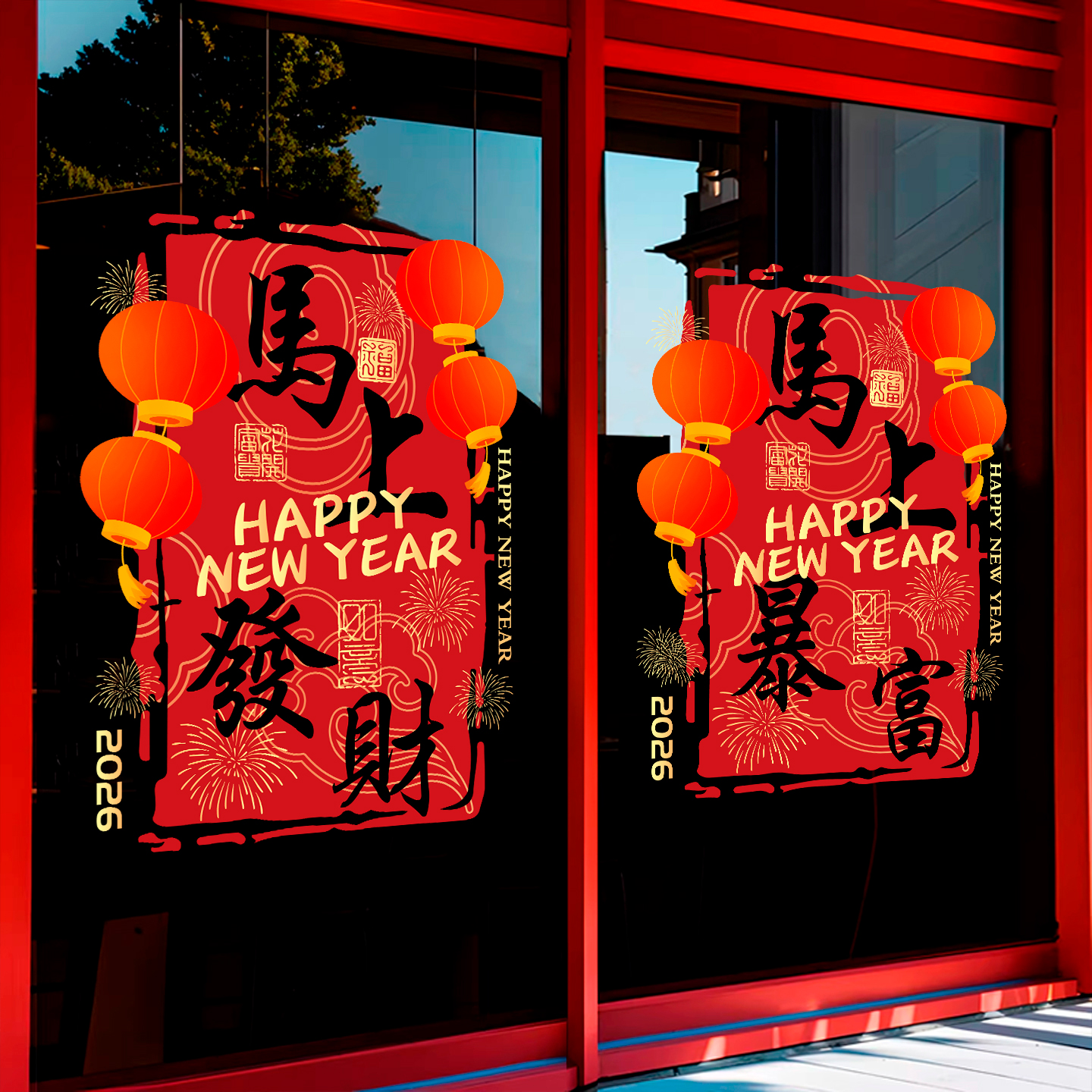 2026马年春字玻璃贴纸商场酒店公司橱窗玻璃门新年春节装饰静电贴