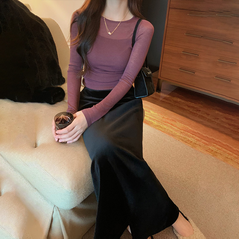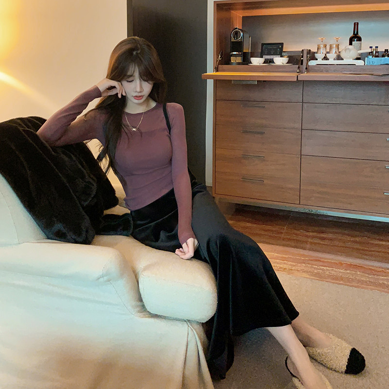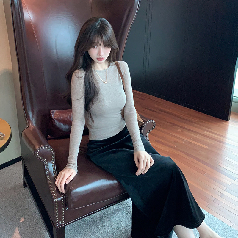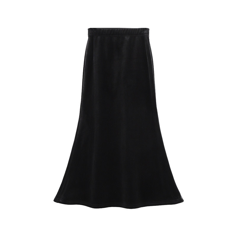 愉悦黑色丝绒包臀鱼尾半身长裙