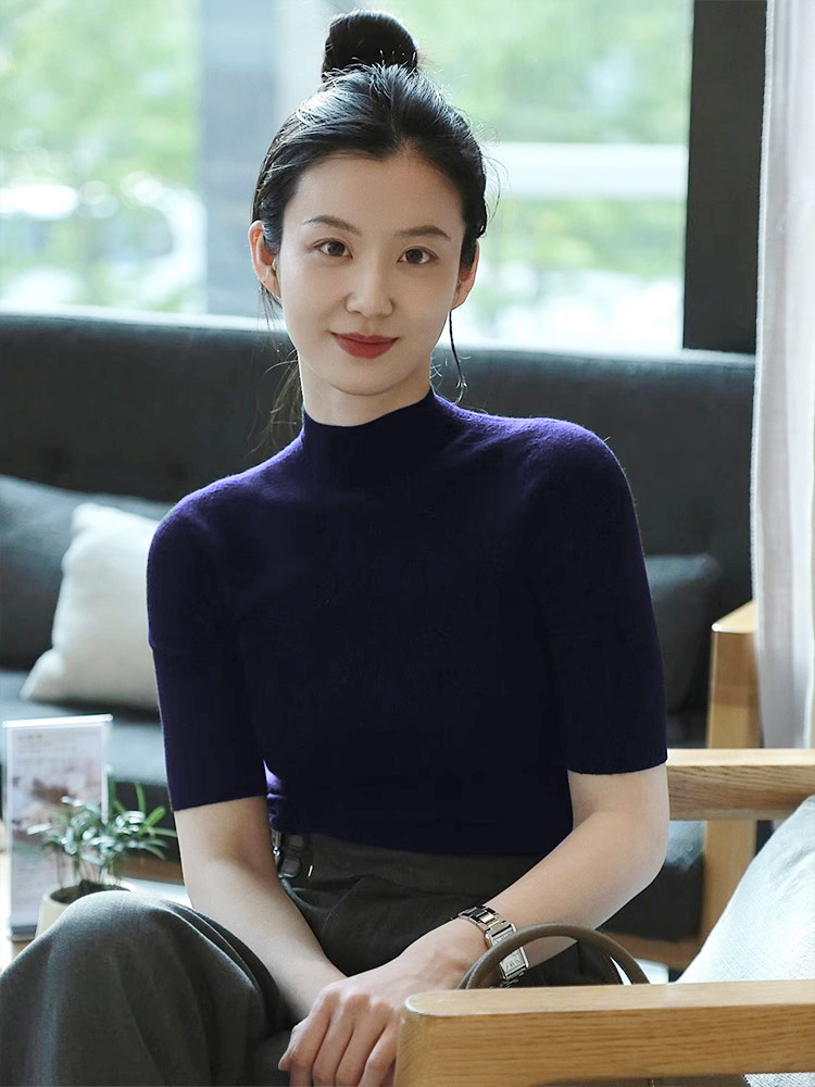 2025新款中袖上衣女春秋高级感五分袖打底衫洋气半高领短袖针织衫