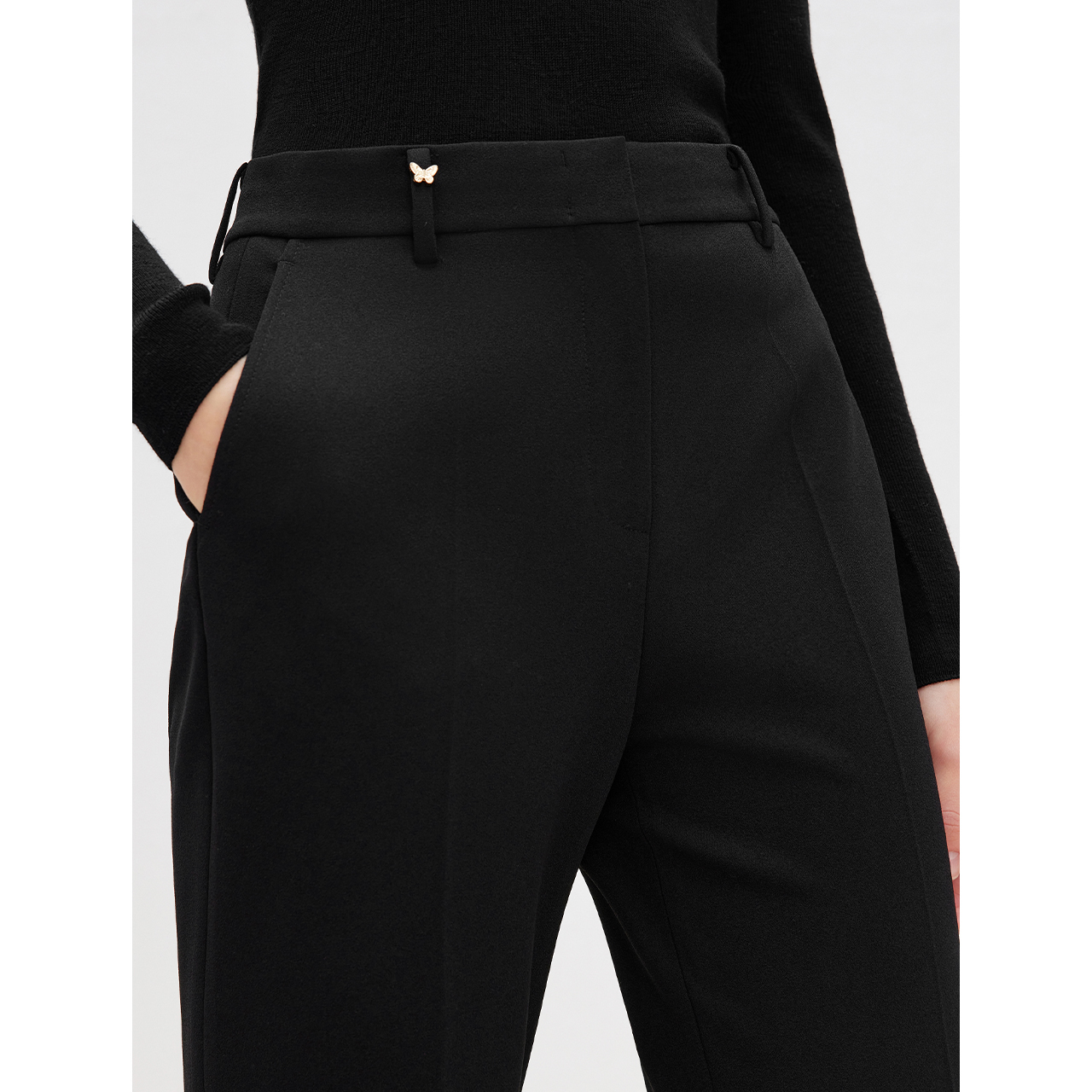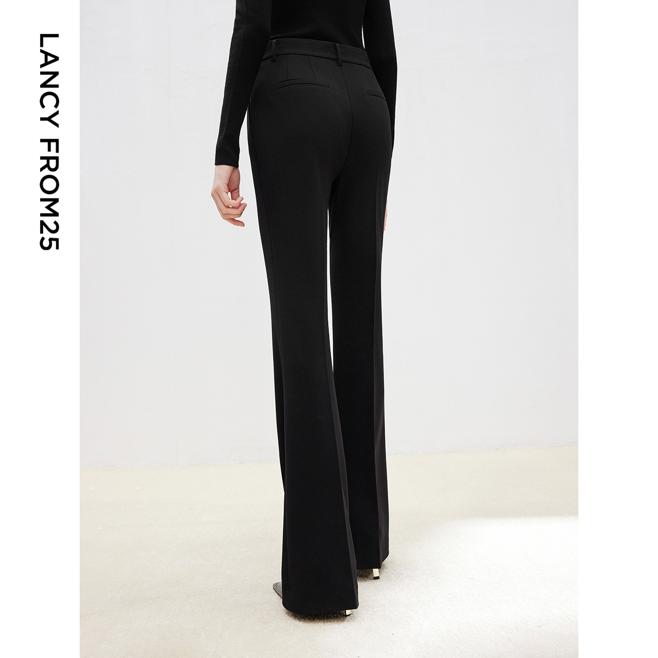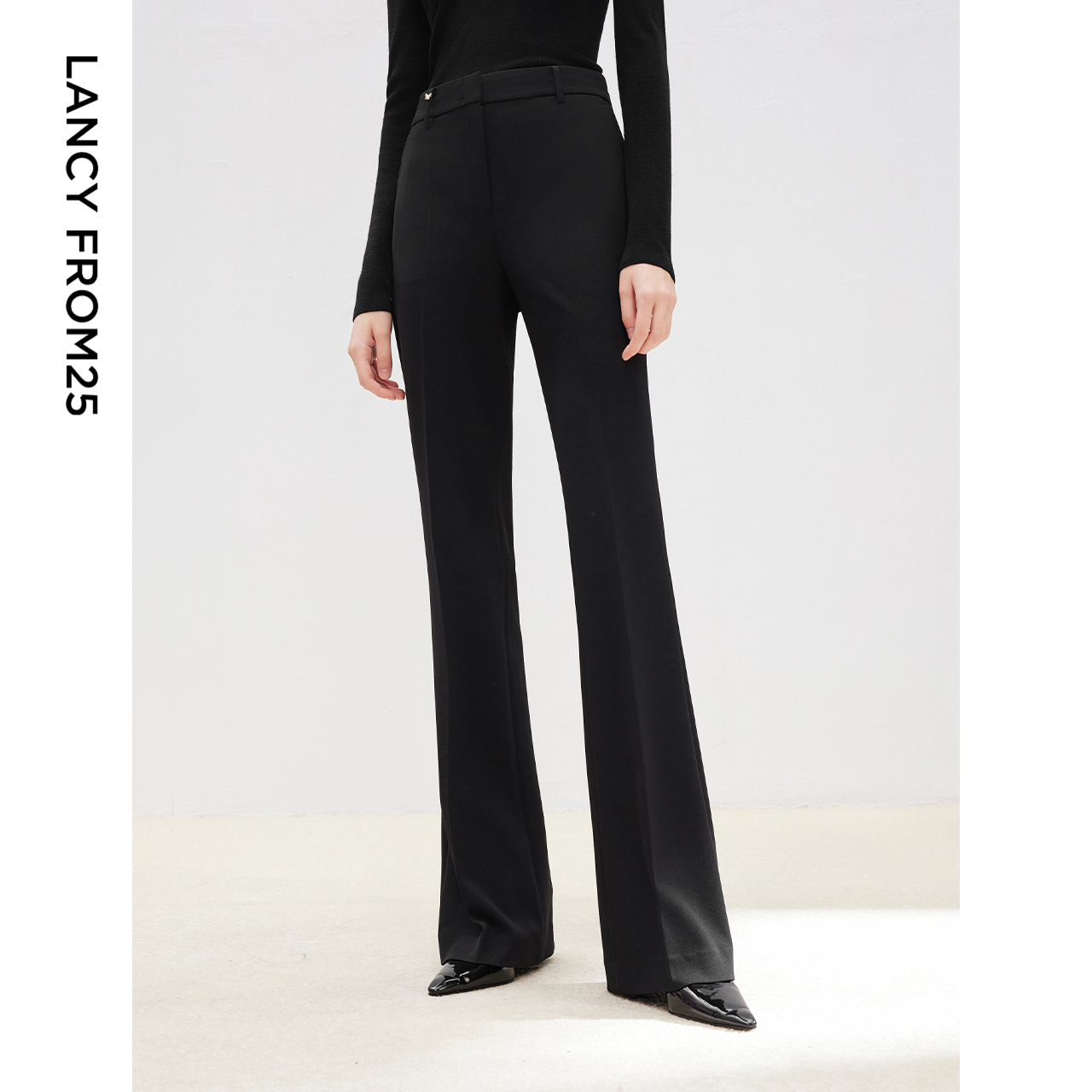 朗姿设计感气质微喇高腰西裤2025年春季新款职业通勤黑色西装裤女
