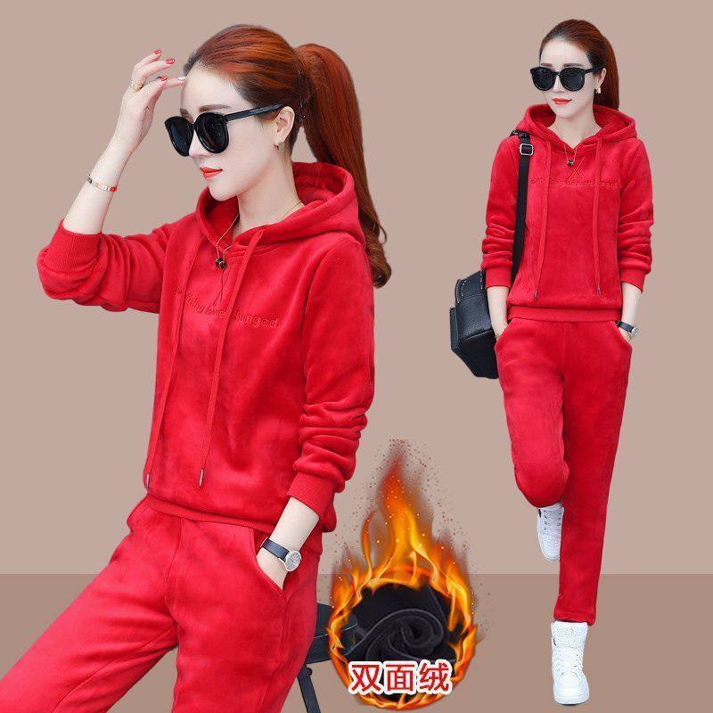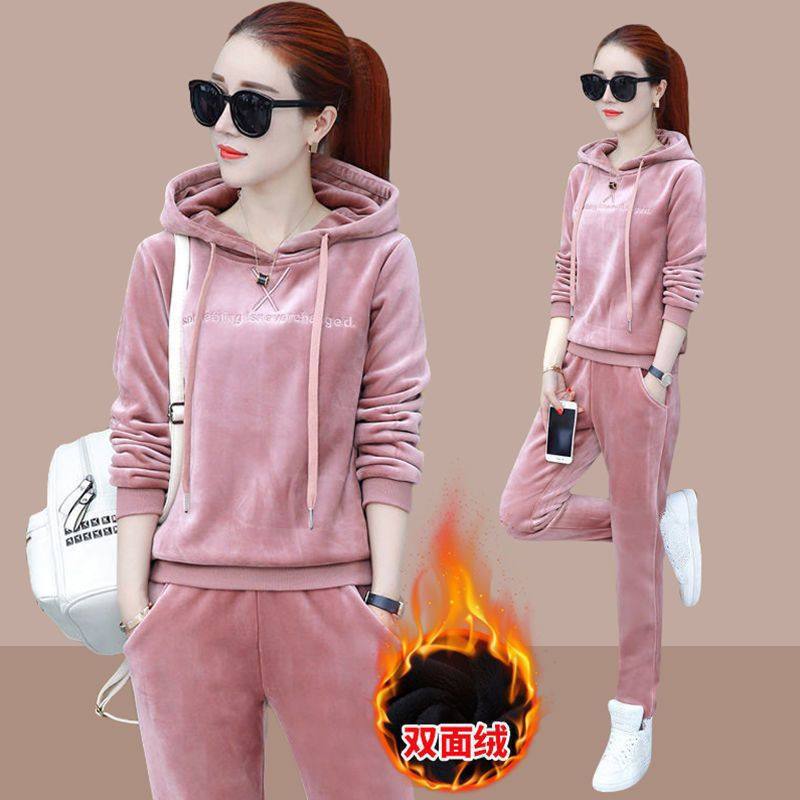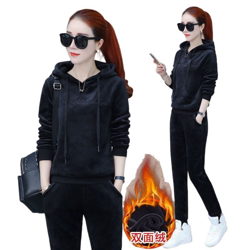 金丝绒连帽卫衣女休闲运动套装女秋冬加厚加绒两件套2025冬季新款