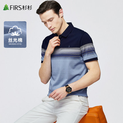 【丝光棉】杉杉男装条纹短袖T恤男士2025夏季新款纯棉渐变POLO衫