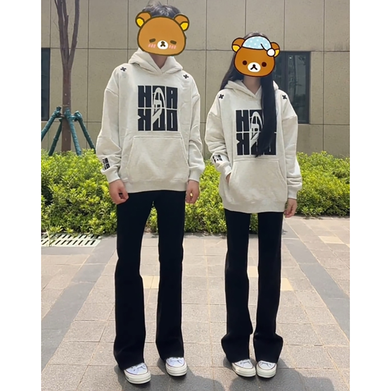 美式高街vibe弯刀复古水洗黑色牛仔裤男女秋冬加绒修身直筒微喇裤