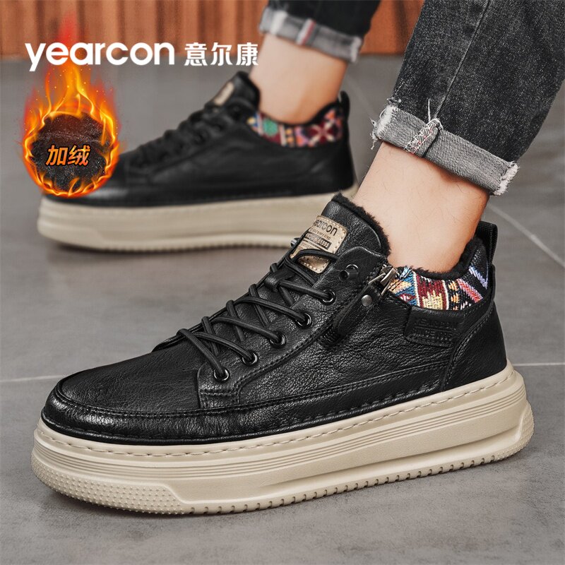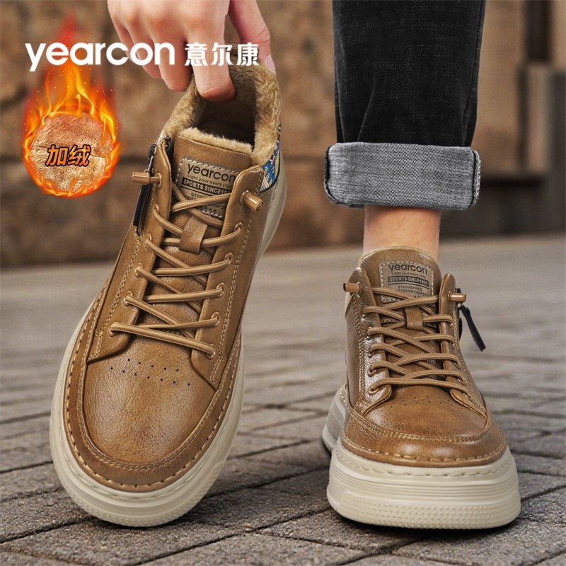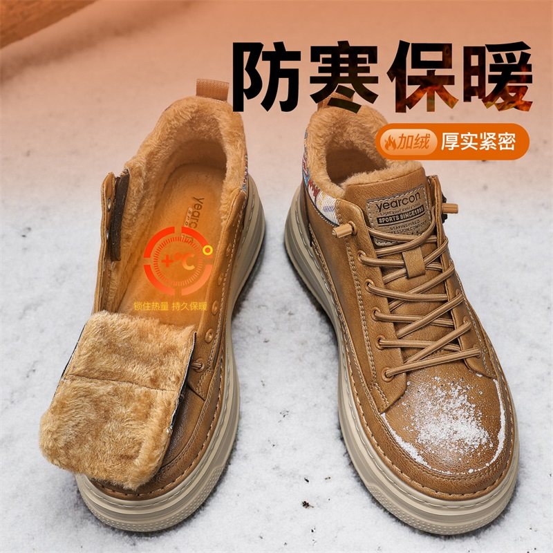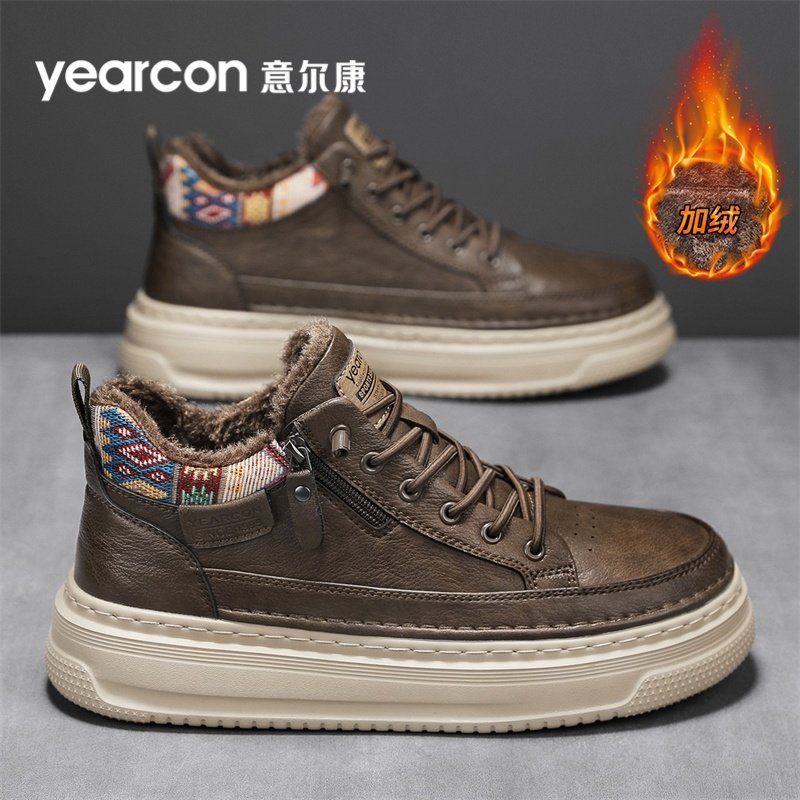 意尔康男鞋2025冬季新款加绒棉鞋男士休闲中高帮皮鞋男运动板鞋男