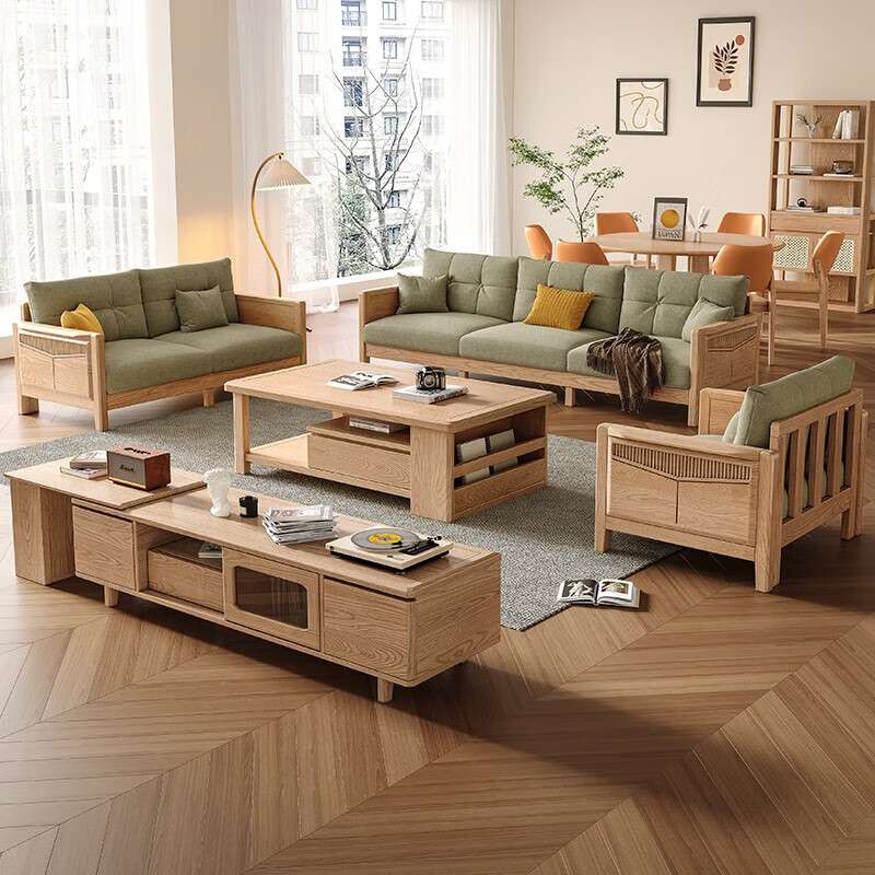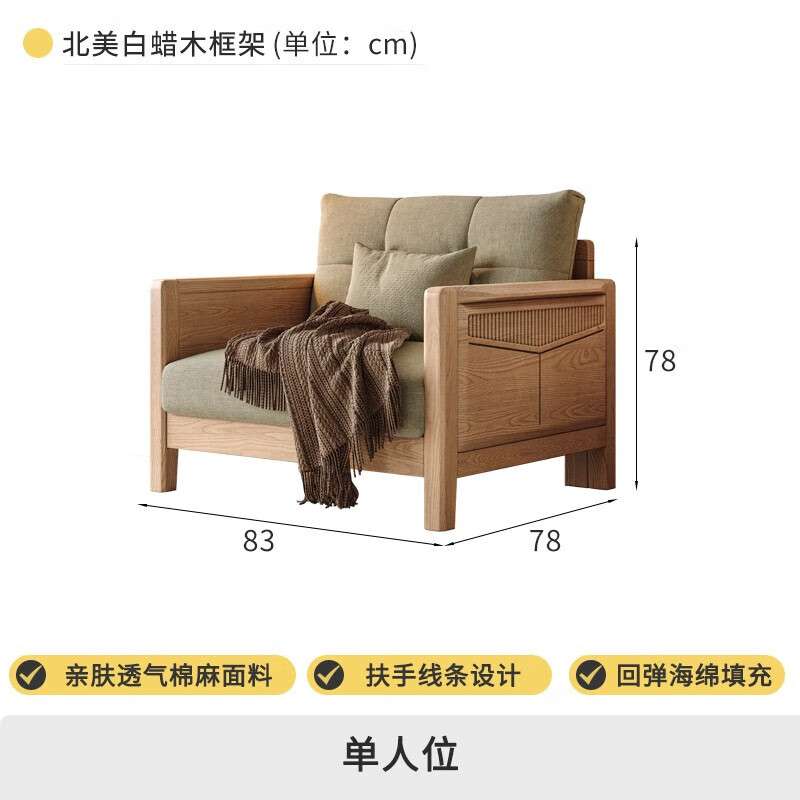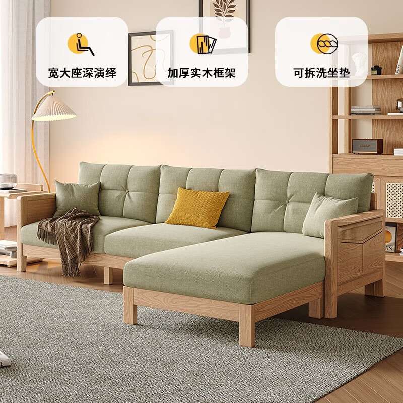 北欧白蜡木实木沙发组合现代简约客厅转角贵妃沙发布艺三人位沙发