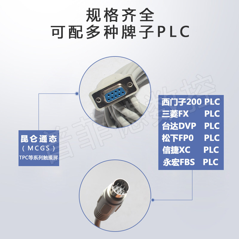 昆仑通态MCGS触摸屏与三菱西门子台达信捷松下PLC通讯连接下载线