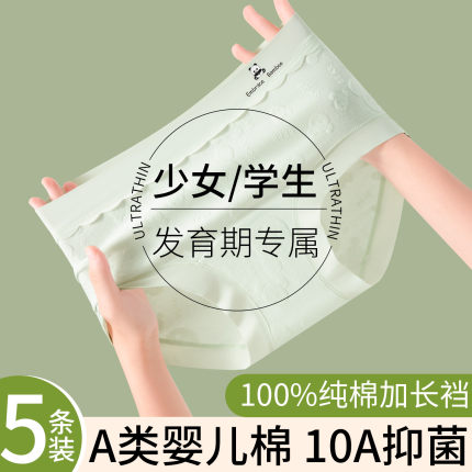 初高中学生发育期少女孩内裤女士纯棉抗菌加长裆青少年大童三角裤