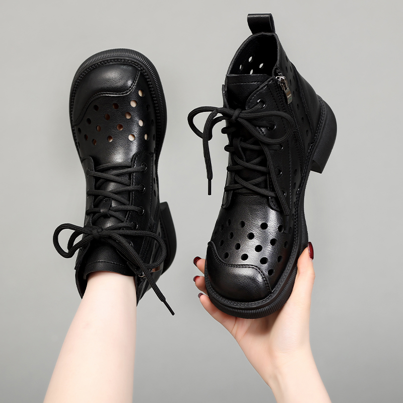 真皮鞋马丁靴薄款女凉鞋洞洞鞋