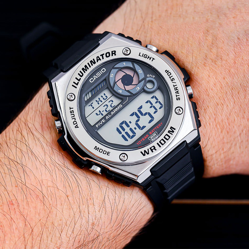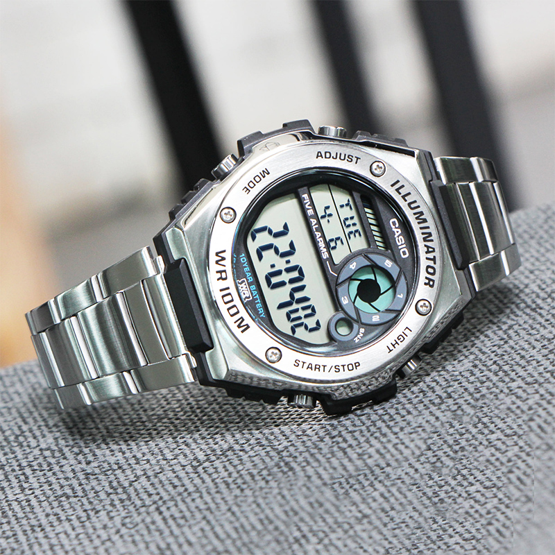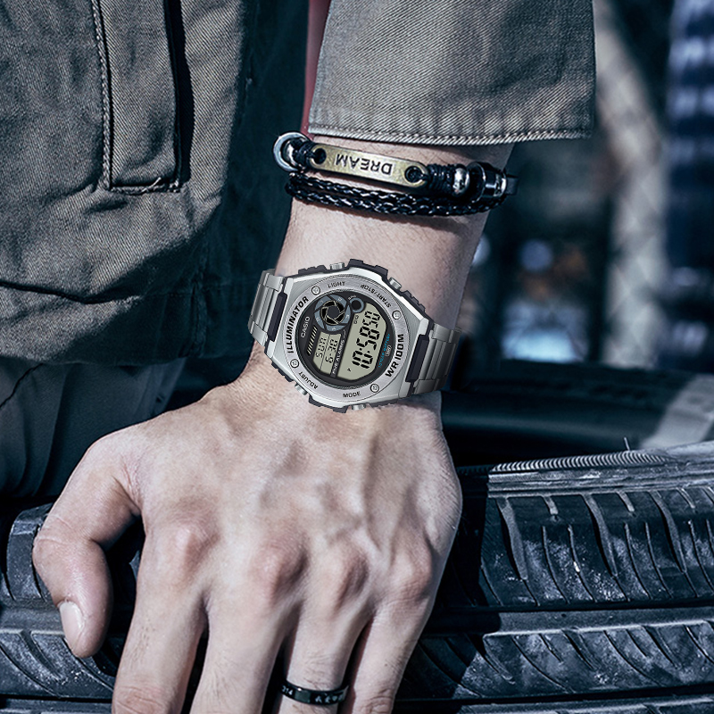 卡西欧手表男钢铁之心学生时尚钢带十年电力MWA-100HD-1A