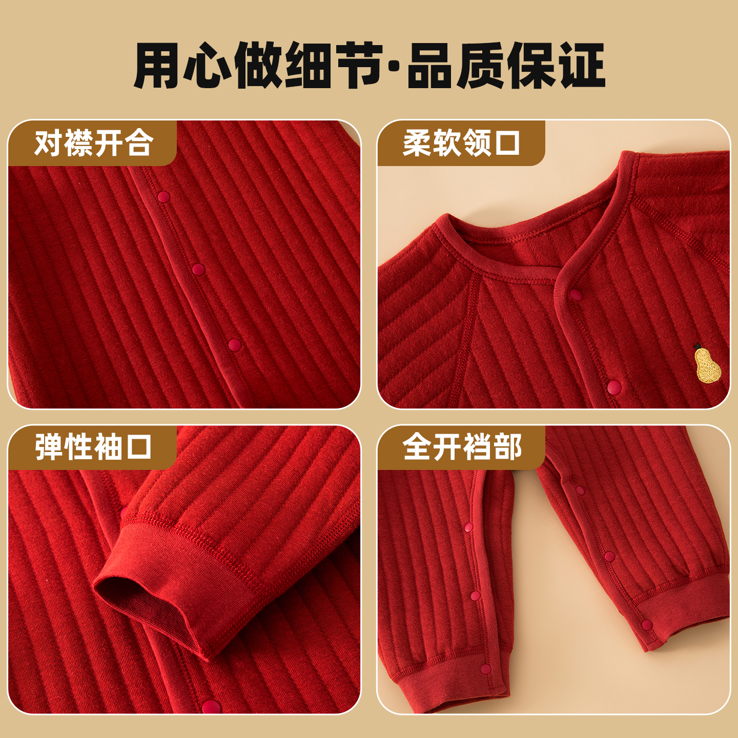 婴儿衣服红色夹棉连体衣满月宝宝男女秋冬长袖外出保暖哈衣新生儿