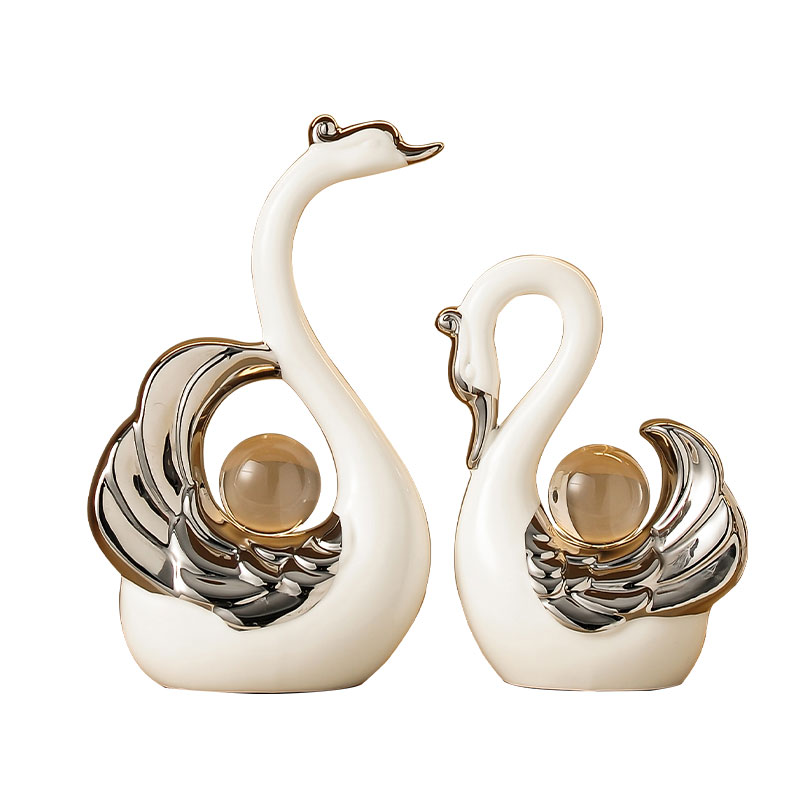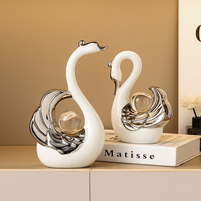 高级感水晶天鹅一对电视柜摆件小众客厅酒柜装饰品结婚送新人礼物