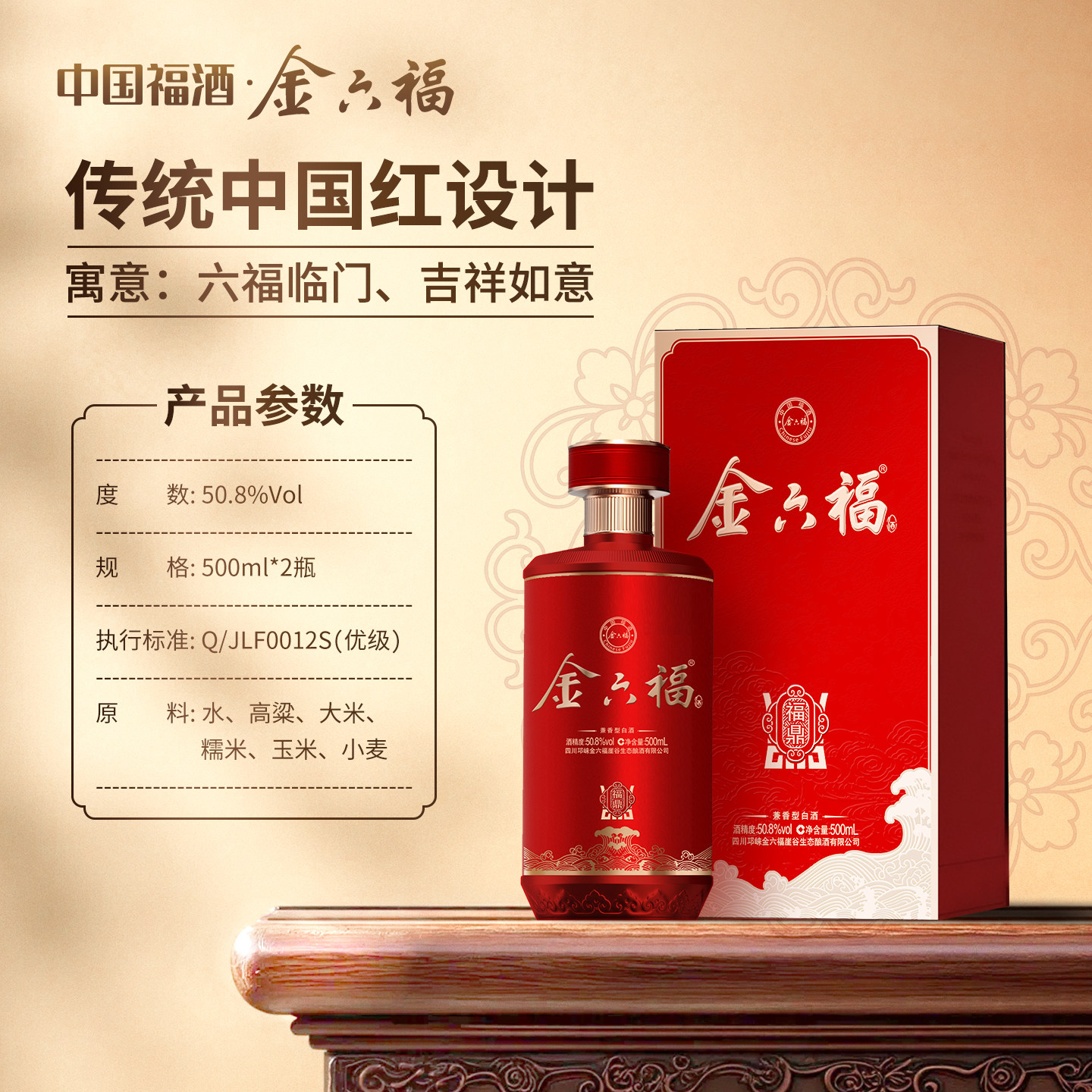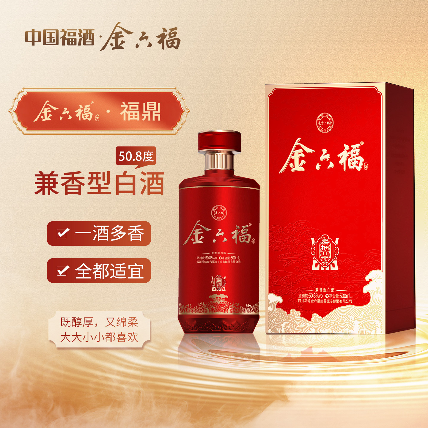 金六福酒福鼎50.8度兼香型白酒绵柔粮食酒500ml*6瓶整箱婚宴用酒