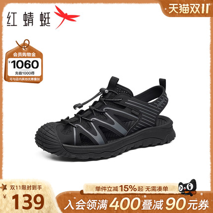 红蜻蜓沙滩鞋2025夏季新款男鞋包头溯溪鞋镂空户外徒步休闲凉鞋男