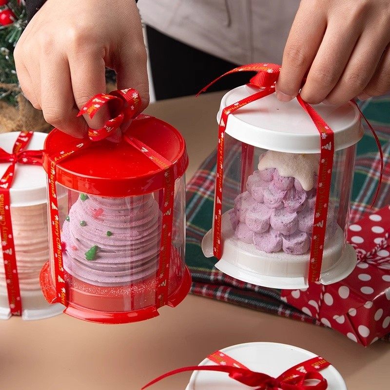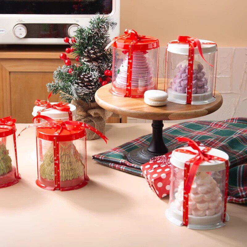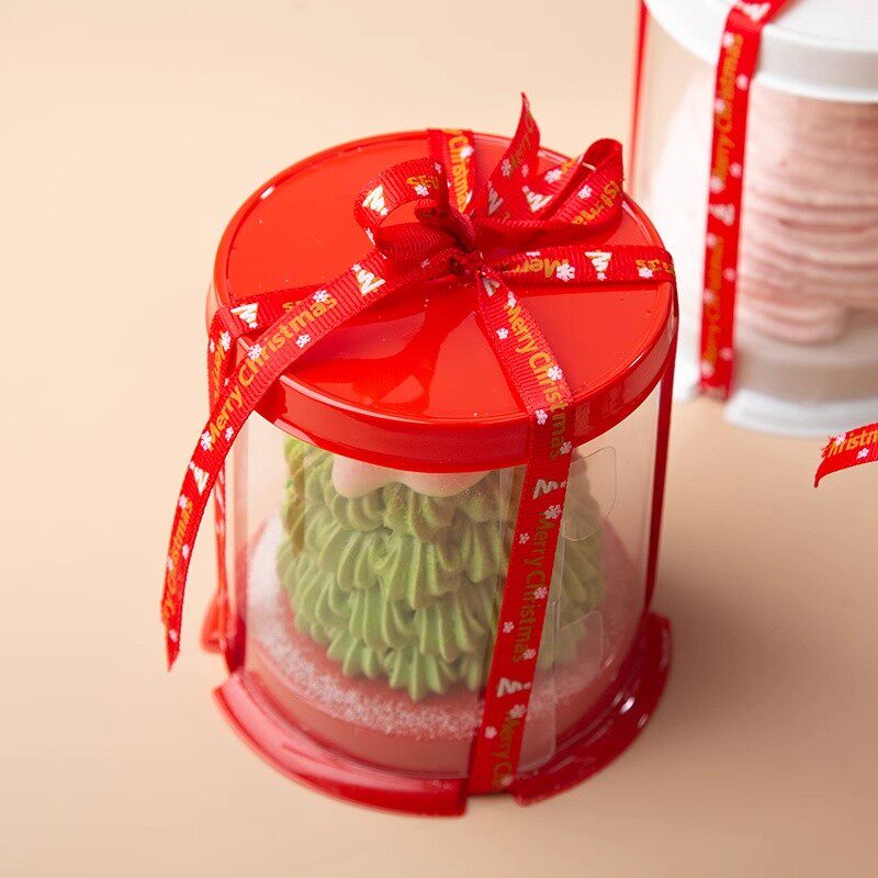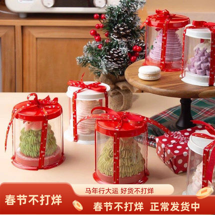 网红2寸小圆形蛋糕盒透明小甜品小西点盒法式法甜烘焙蛋糕盒子