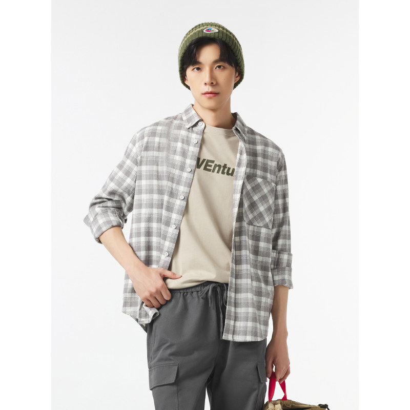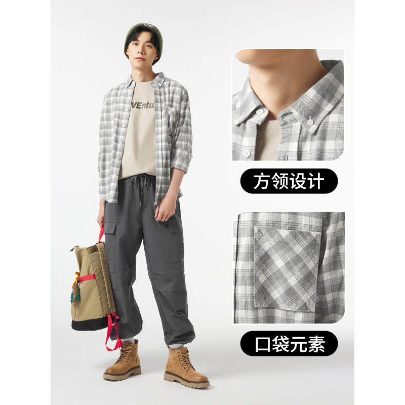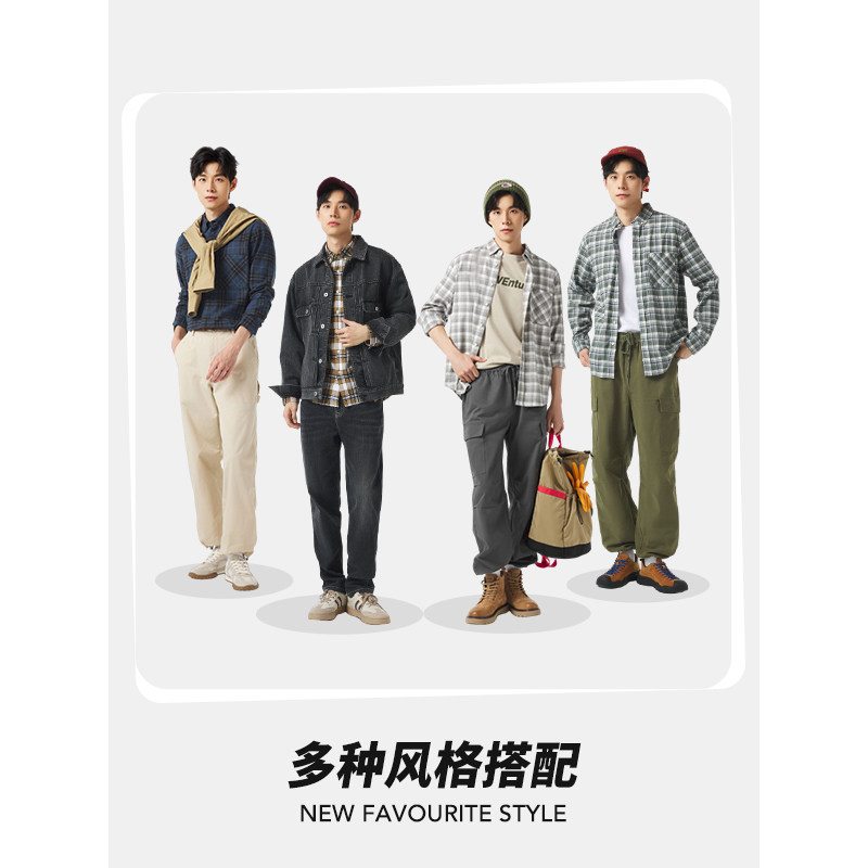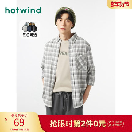 热风秋季新款男士时尚经典格子衬衫复古潮流宽松休闲上衣男