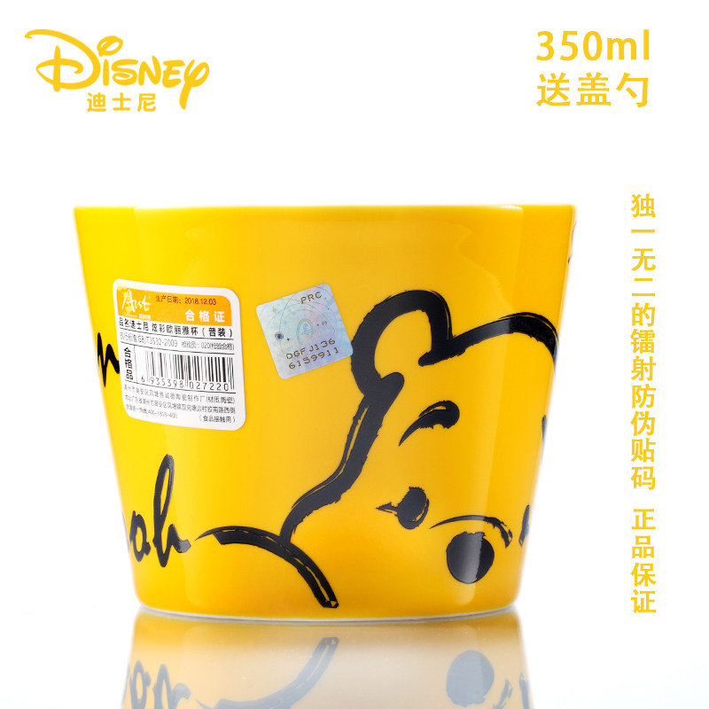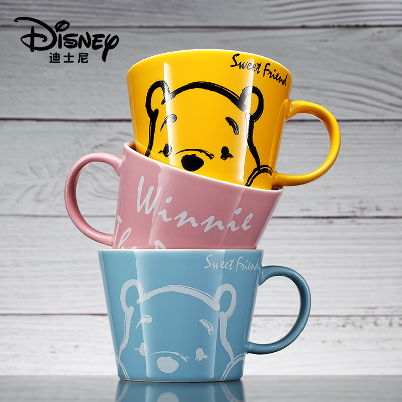 迪士尼马克杯 大杯口卡通水杯咖啡杯带盖勺 小熊维尼正品陶瓷杯子