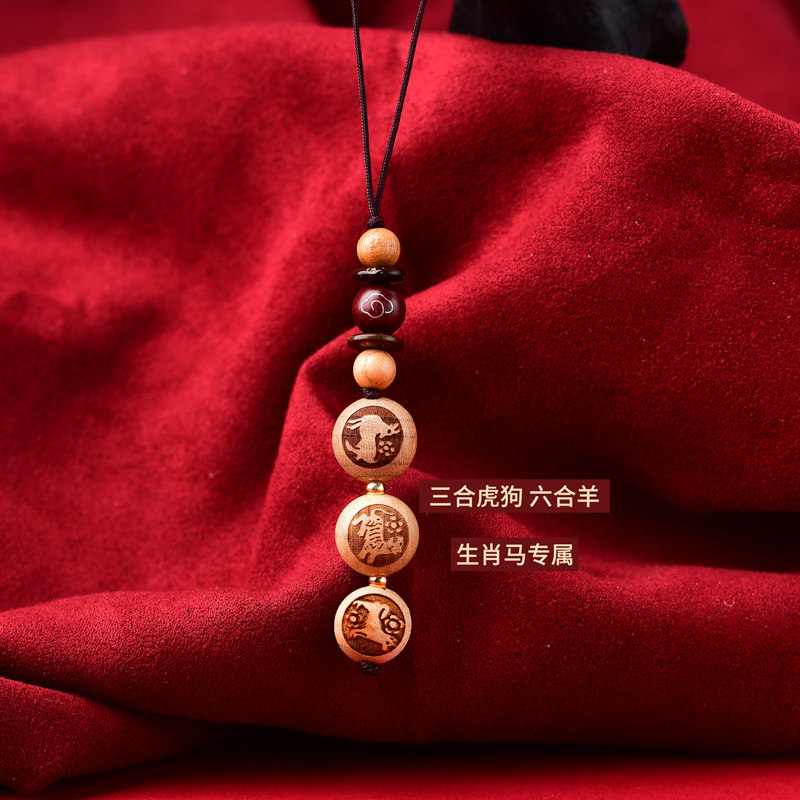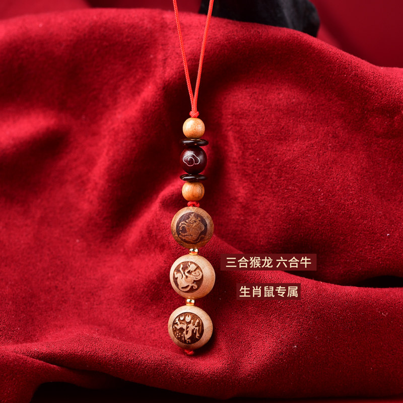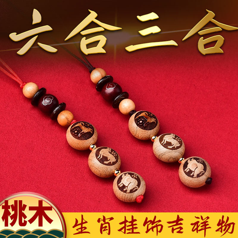 2026年十二生肖桃木三合六合手机链挂件转运珠男女手机挂饰狗形