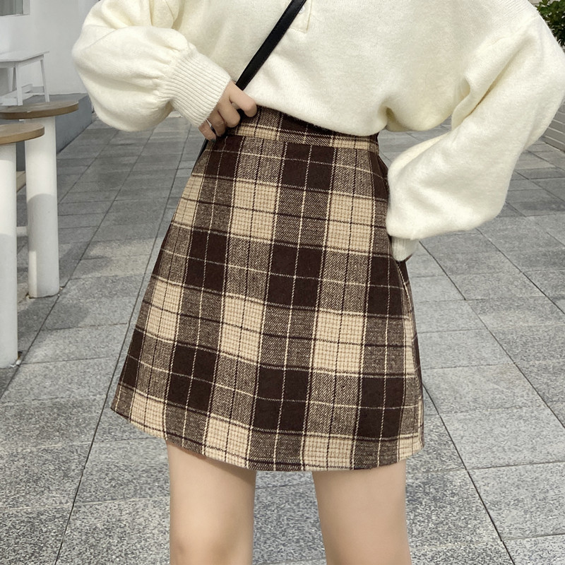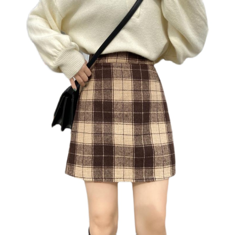 毛呢格子半身裙女大码秋冬a字短裙2022新款显瘦高腰冬季包臀裙子