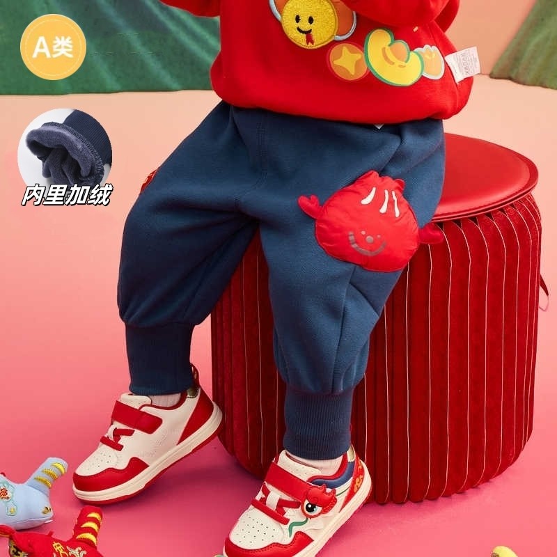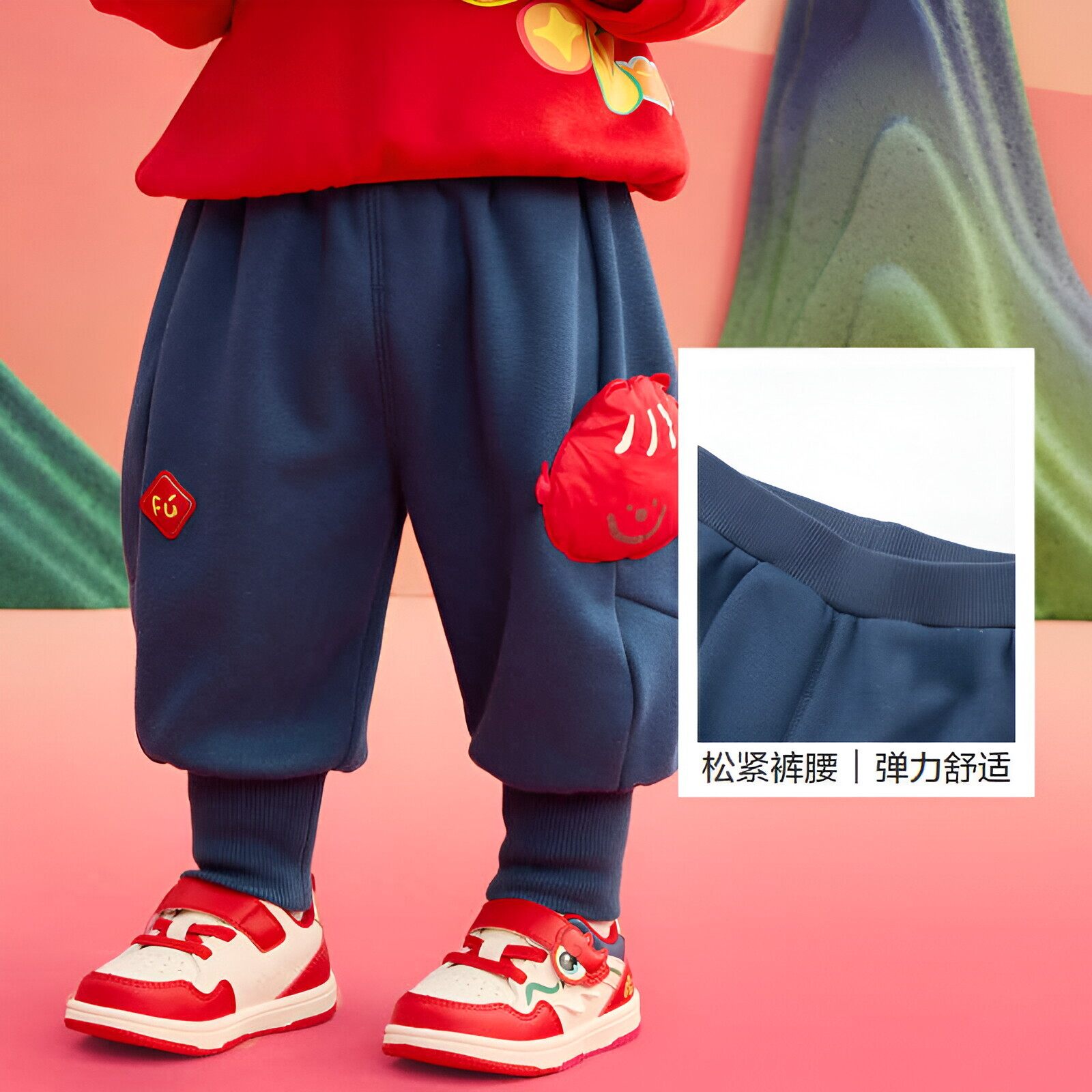 品牌童装宝宝裤子婴儿加绒长裤春装2026新款拜年服儿童加厚休闲裤