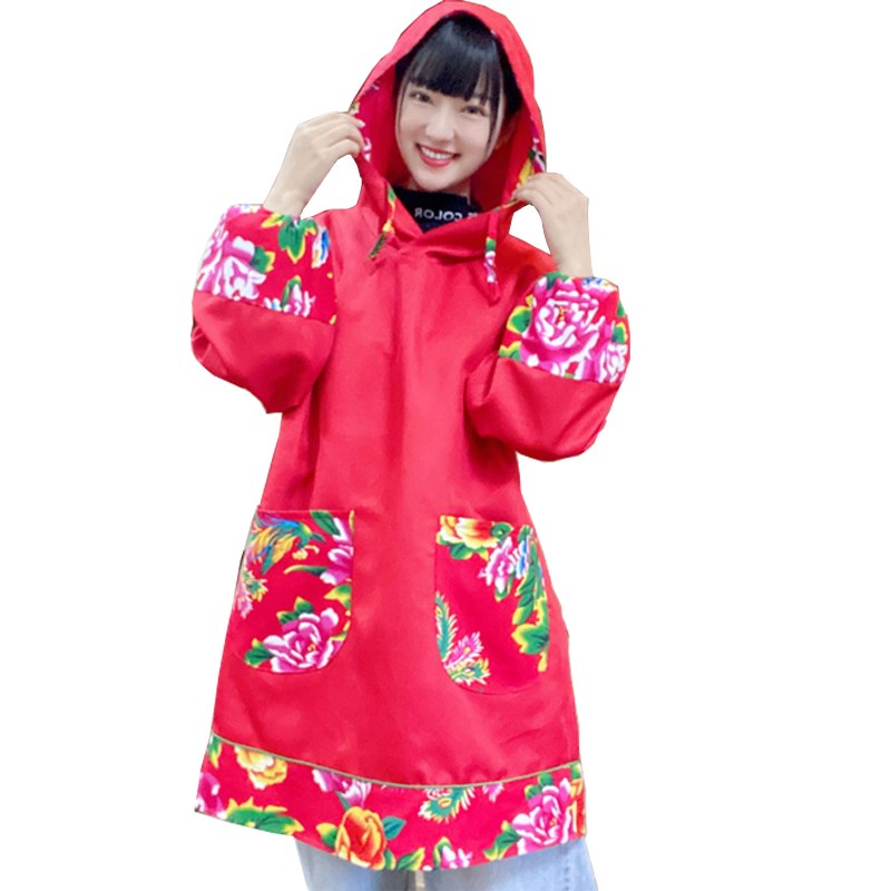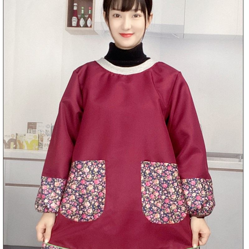 长袖耐脏围裙防水防油厨房家用服务员中长款特色民族风中式罩衣