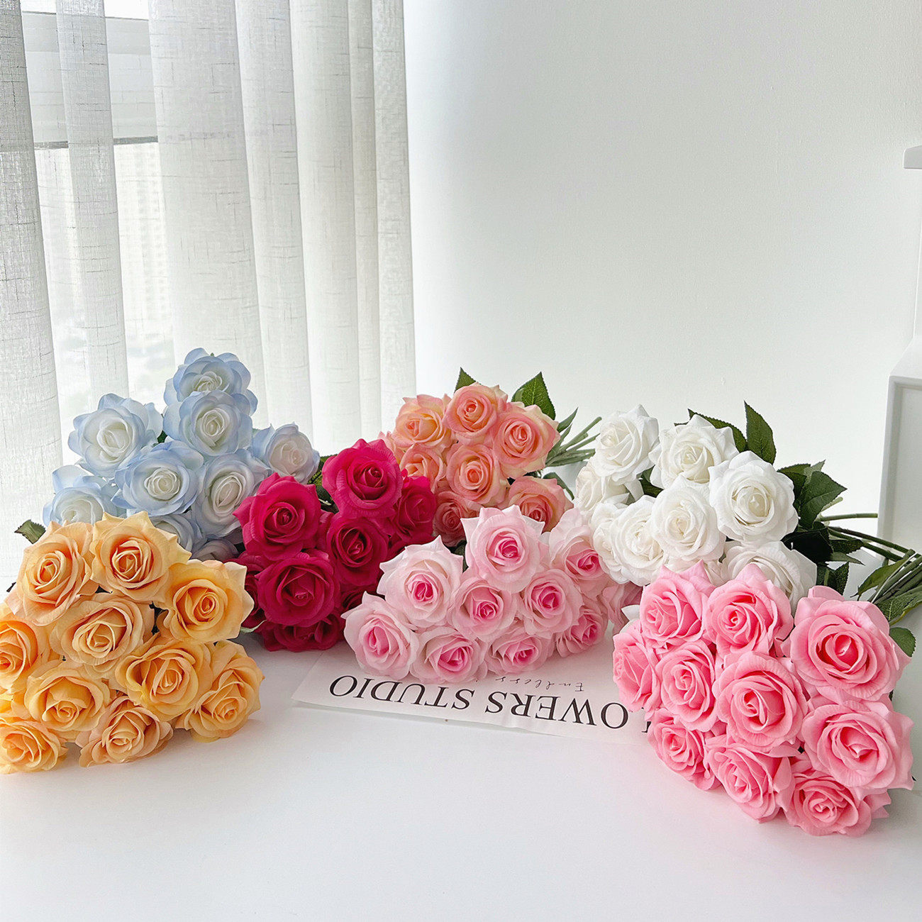 ins手感保湿碎冰蓝玫瑰仿真花家居花束装饰摆设网红假花旅拍手捧