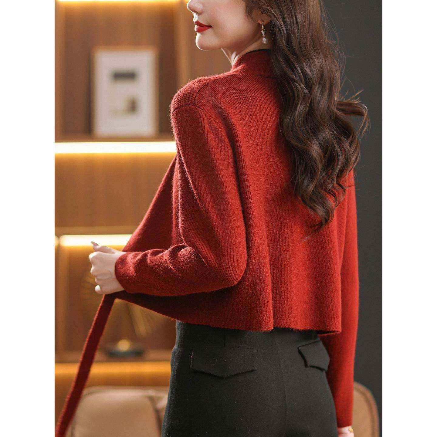 秋冬季针织开衫女短款2025新款中年妈妈旗袍披肩小外搭上衣1015n