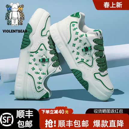暴力熊新款男鞋2026春季潮流运动鞋子男女情侣百搭低帮休闲板鞋