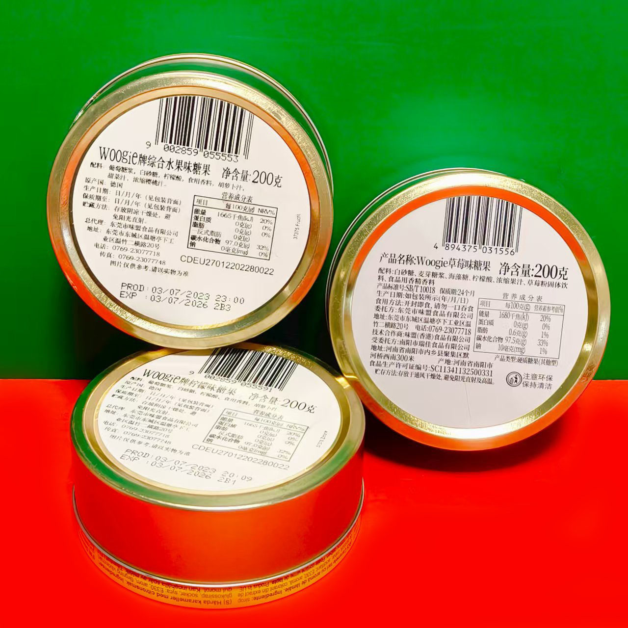 Woogie牌柠檬味综合水果草莓味糖果200g盒装网红零食硬糖 折扣价