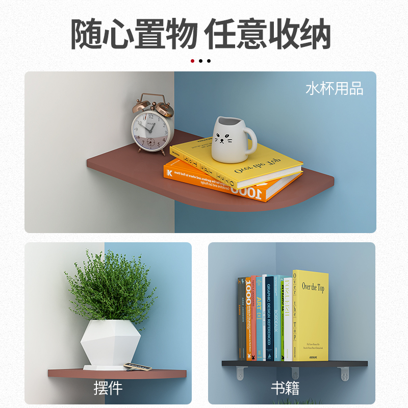 转角墙上置物架墙面书架子卧室壁挂免打孔厨房三角家用椭圆形隔板