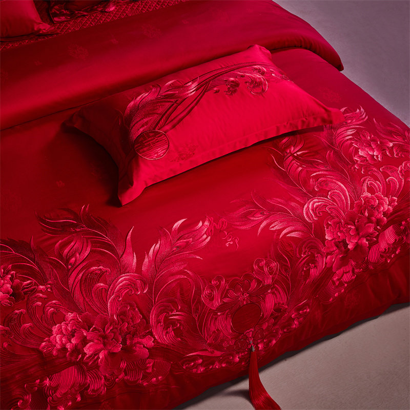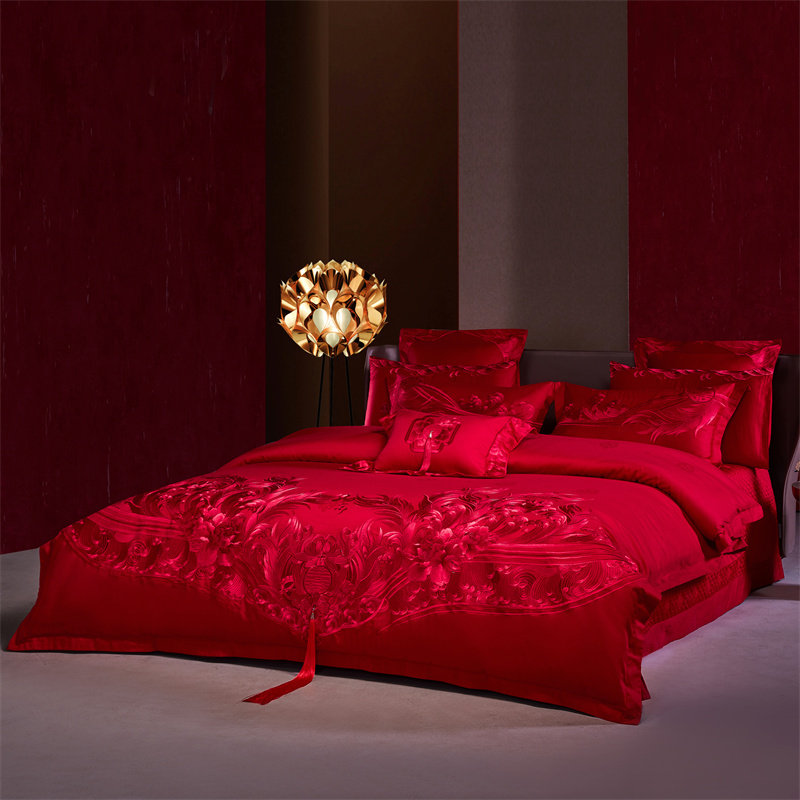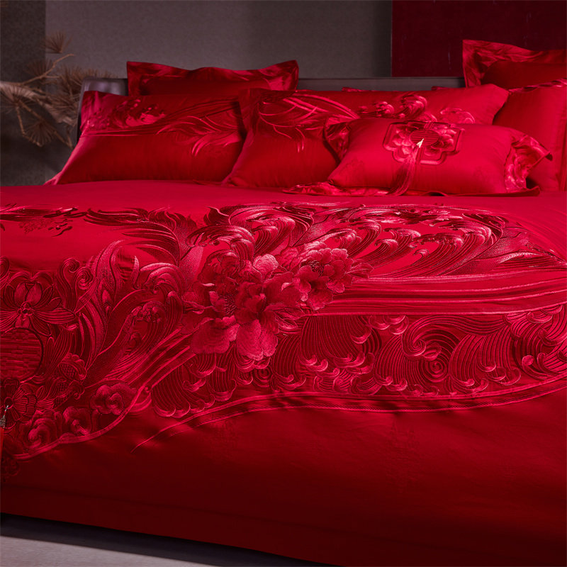 良缘阁婚庆四件套大红色结婚多件套新婚床单被套婚礼床上用品喜被