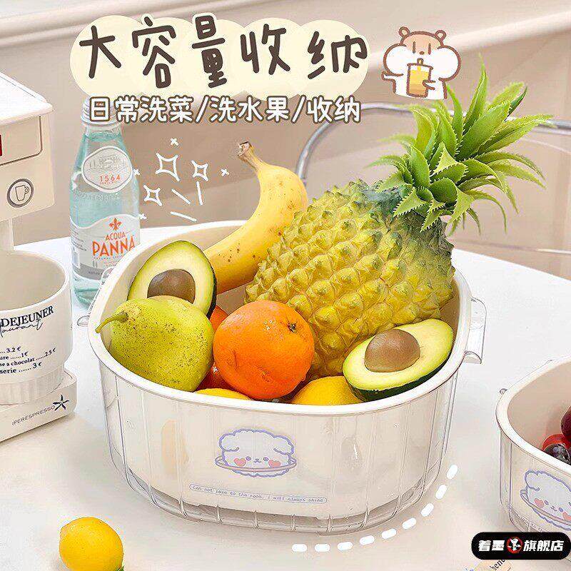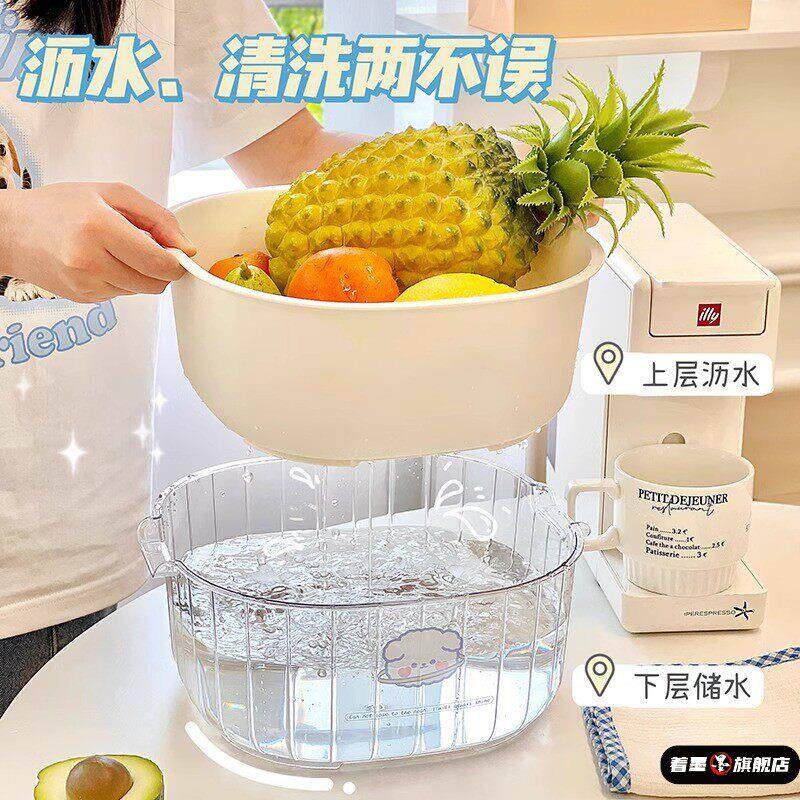 双层洗菜盆沥水篮六件套多功能厨房家用新款水果盘客厅淘洗菜篮子