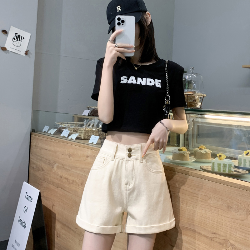 遮胯高腰牛仔短裤女夏季2024新款梨型宽松显瘦卷边a字版阔腿热裤