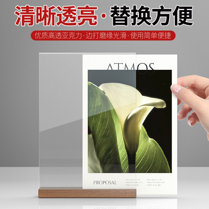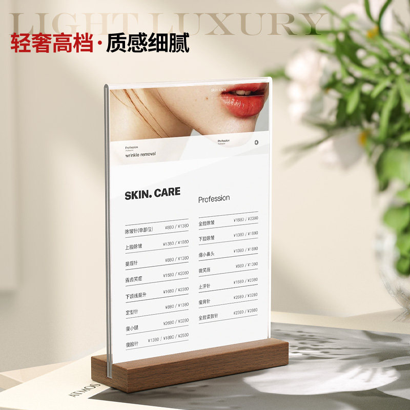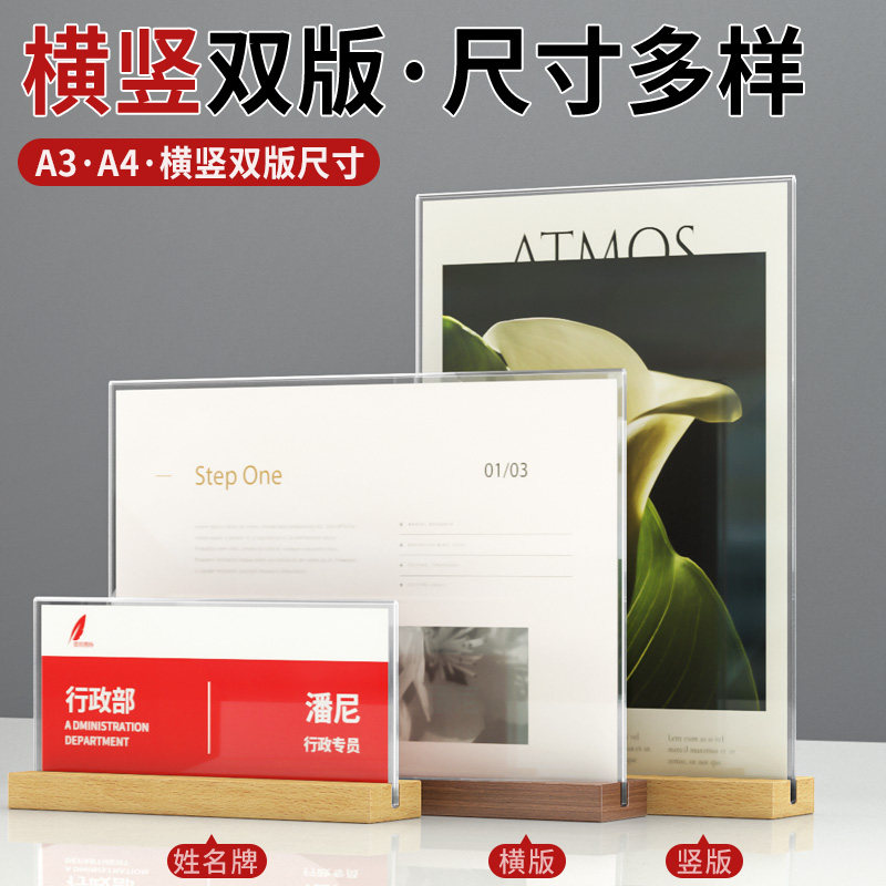亚克力价格展示牌a4立牌桌牌高档木质底座台卡台签架奶茶店餐桌桌面摆台双面透明台牌定制菜单价目表广告牌子