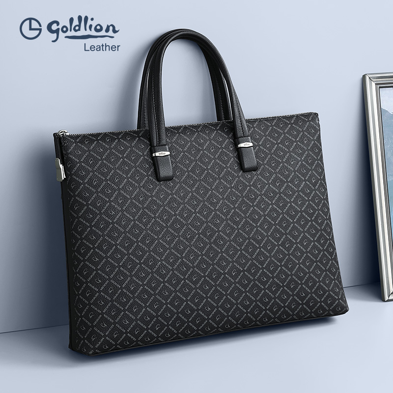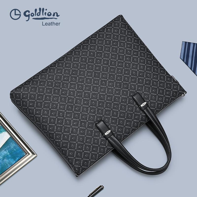金利来新款男士手提包PVC大容量商务包时尚轻奢印花通勤公文包