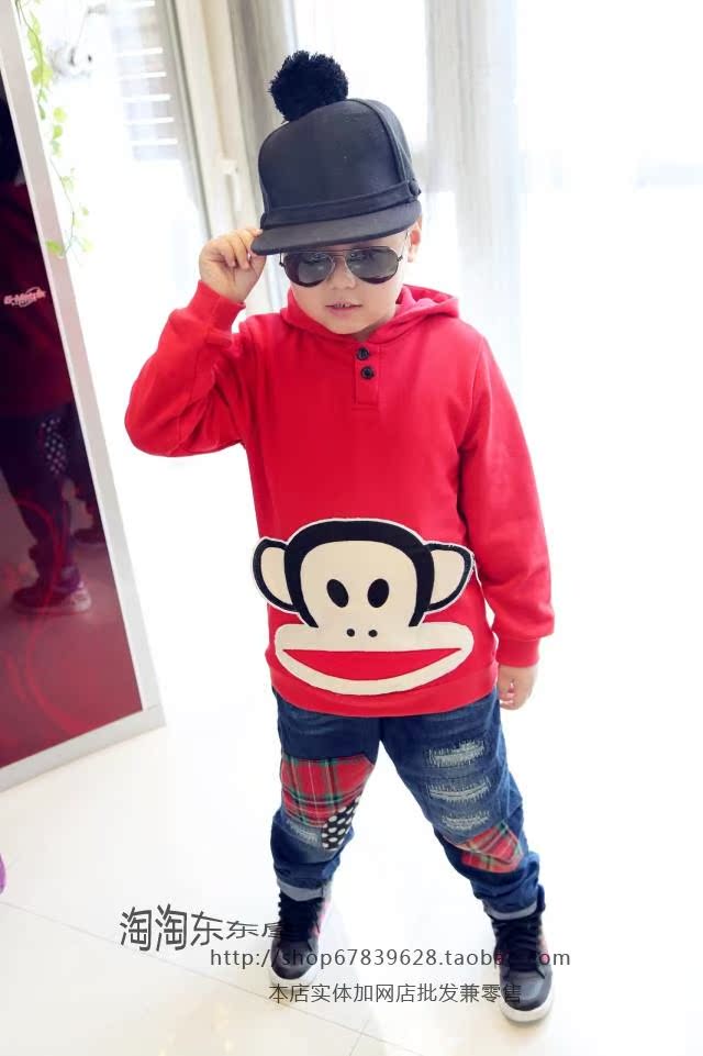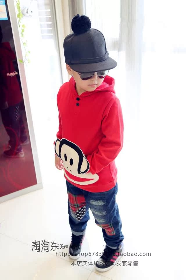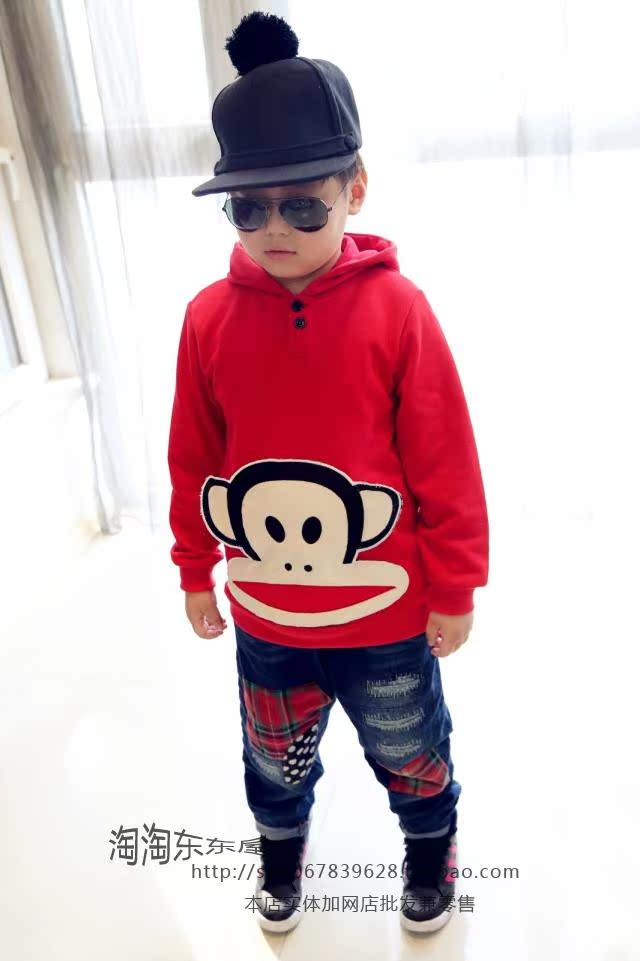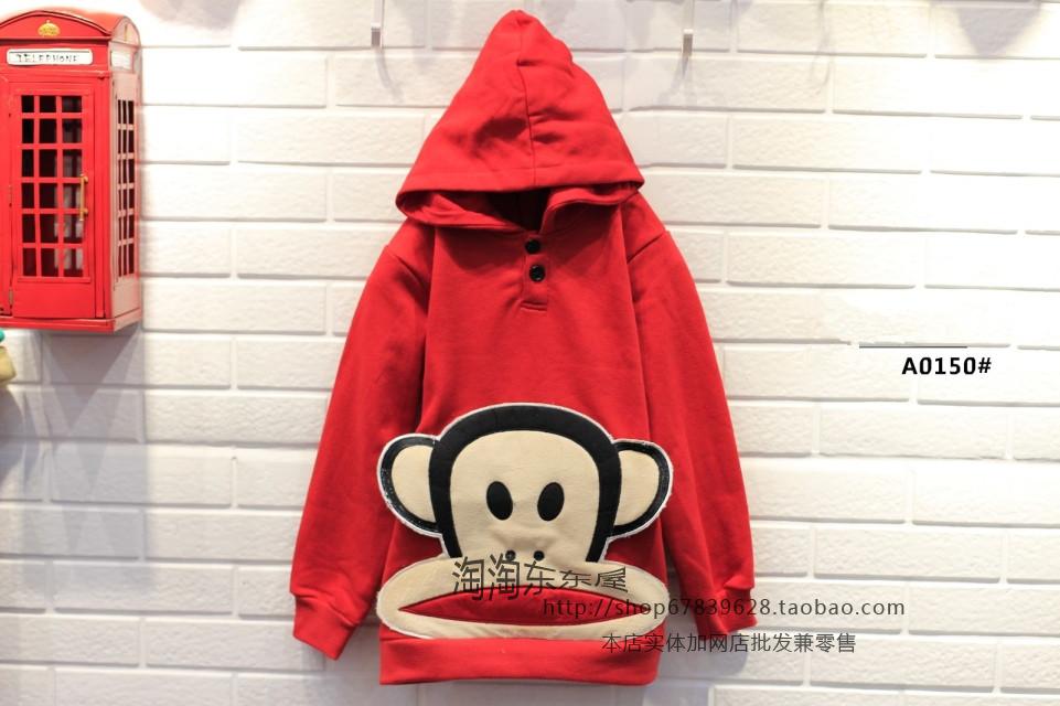 春秋新品儿童帽衫套头连帽卫衣体恤上衣红色百搭休闲男童女童长袖