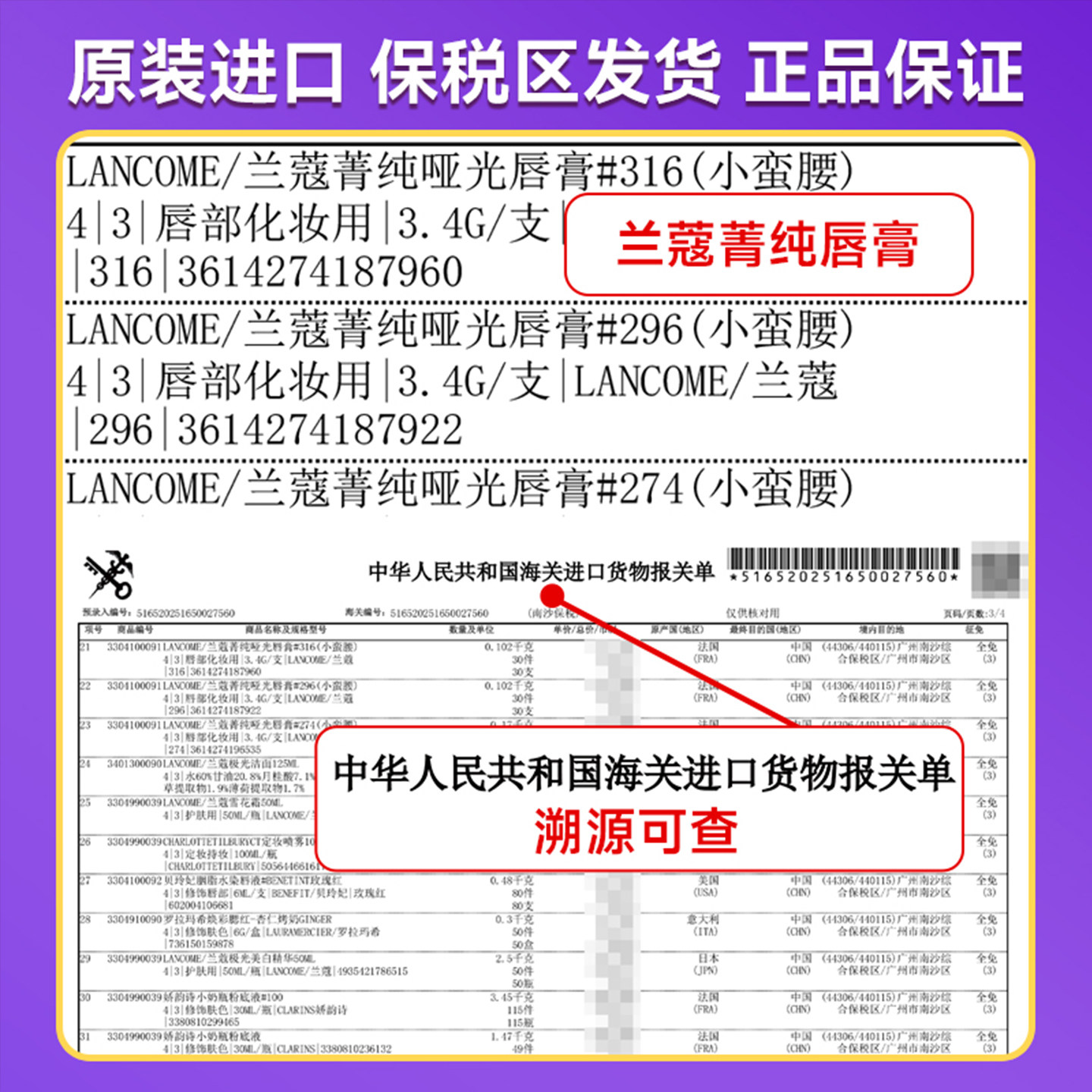 Lancome兰蔻菁纯小蛮腰196口红274百搭275唇釉大牌唇膏官方店正品