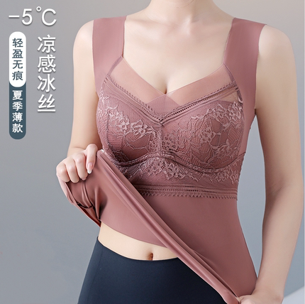 【免穿文胸】夏季冰丝长款免穿文胸内衣吊带背心一体杯美背背心