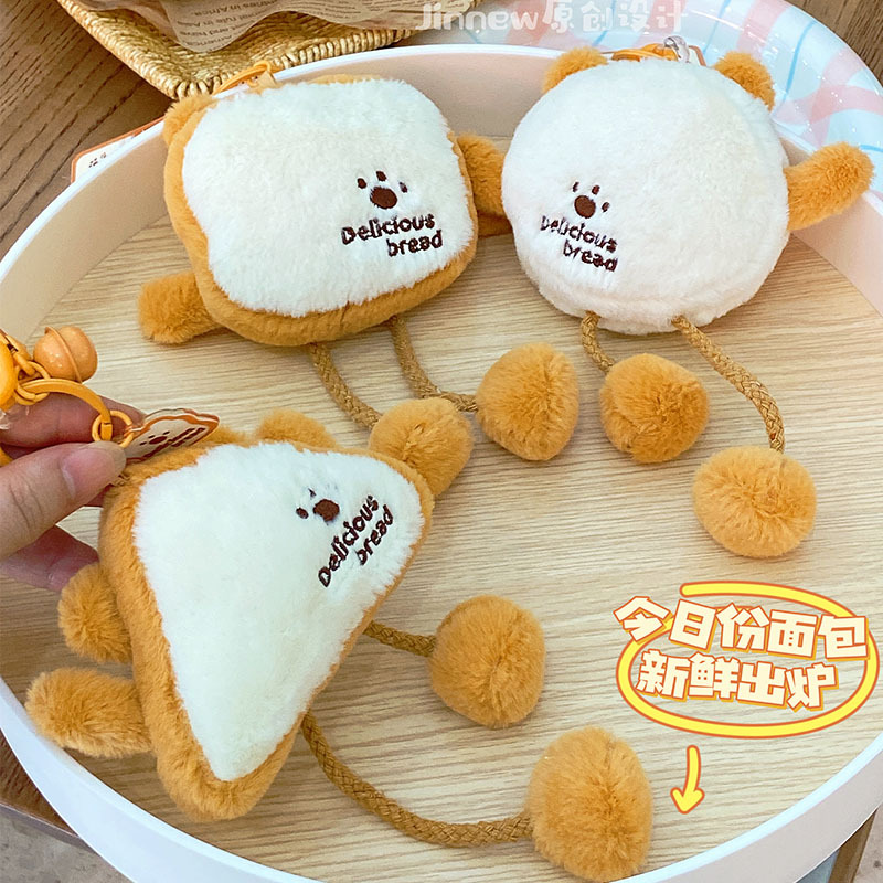 Jinnew 小熊面包屋抽拉毛绒挂件可爱卡通食物钥匙扣书包挂饰礼品