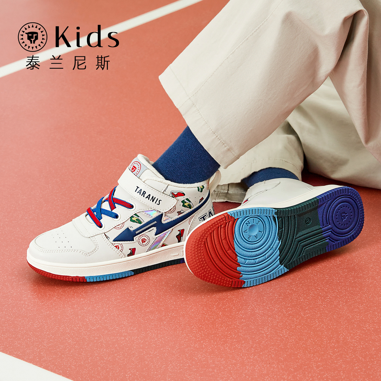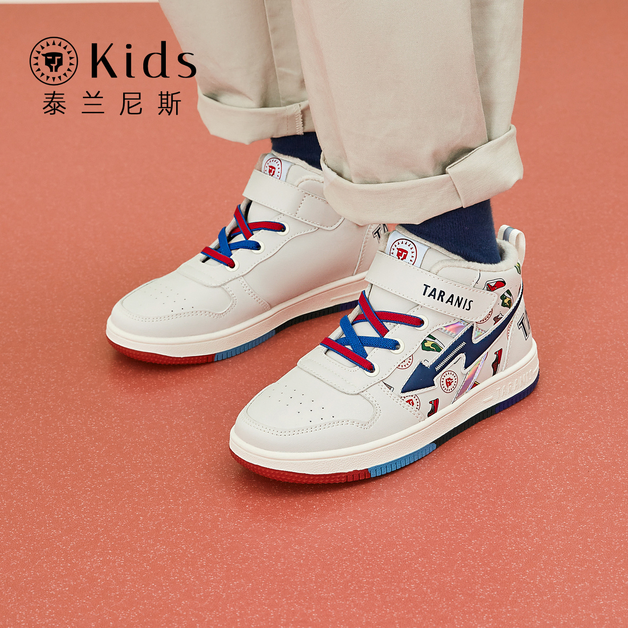 泰兰尼斯童鞋2025冬季新款男童加绒保暖板鞋儿童软底轻便运动鞋