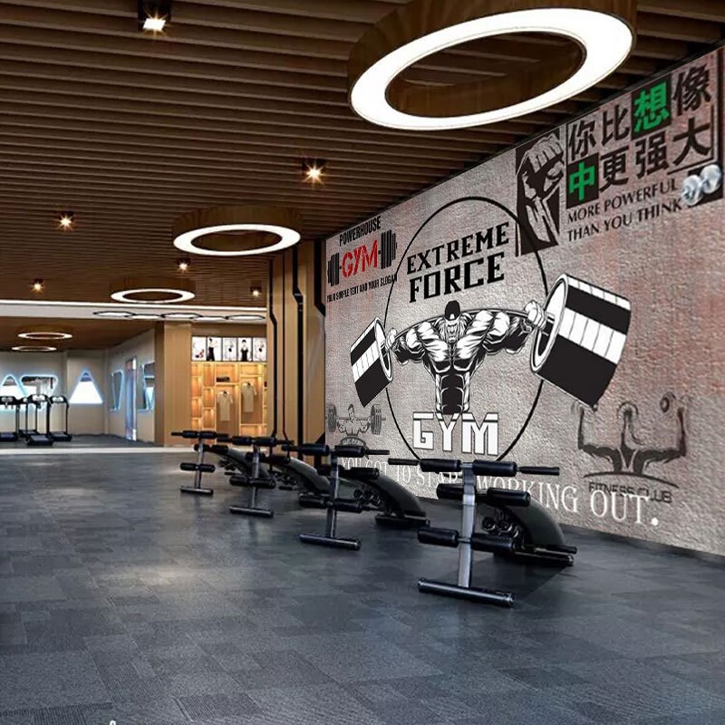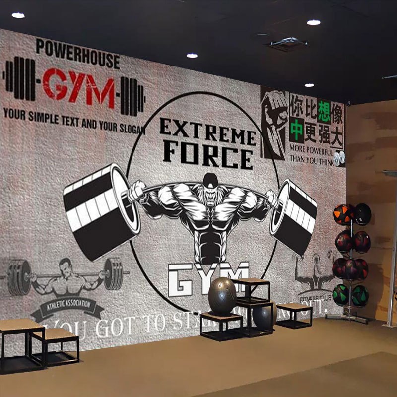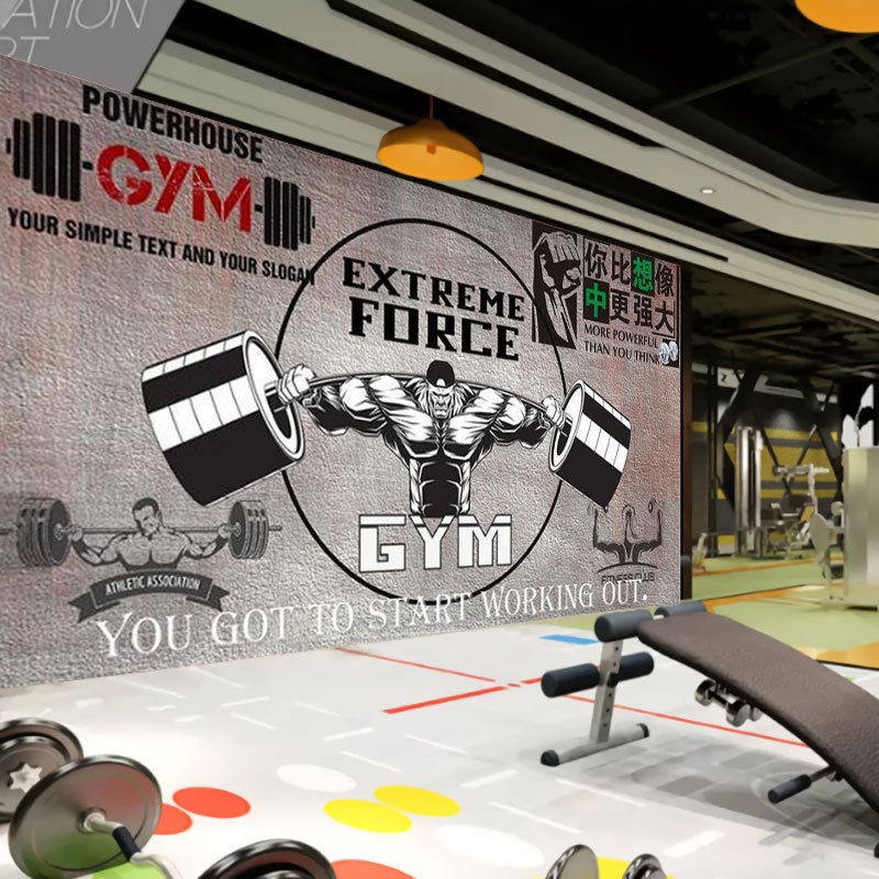 手绘3d立体运动健身房墙纸壁画工业风背景墙壁纸创意涂鸦砖墙墙布