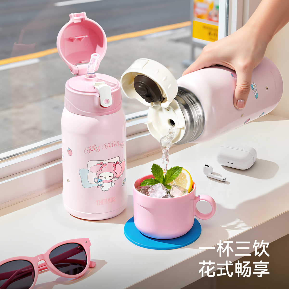 膳魔师儿童保温杯学生上学双盖杯吸管杯直饮杯便携二用大容量水杯