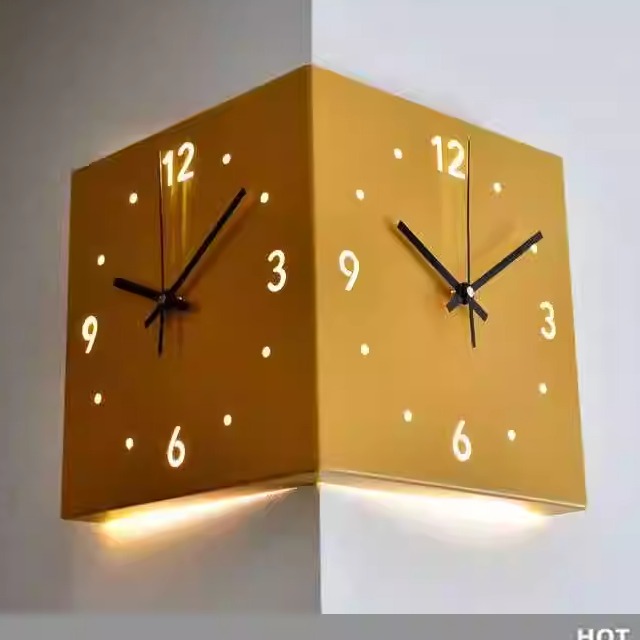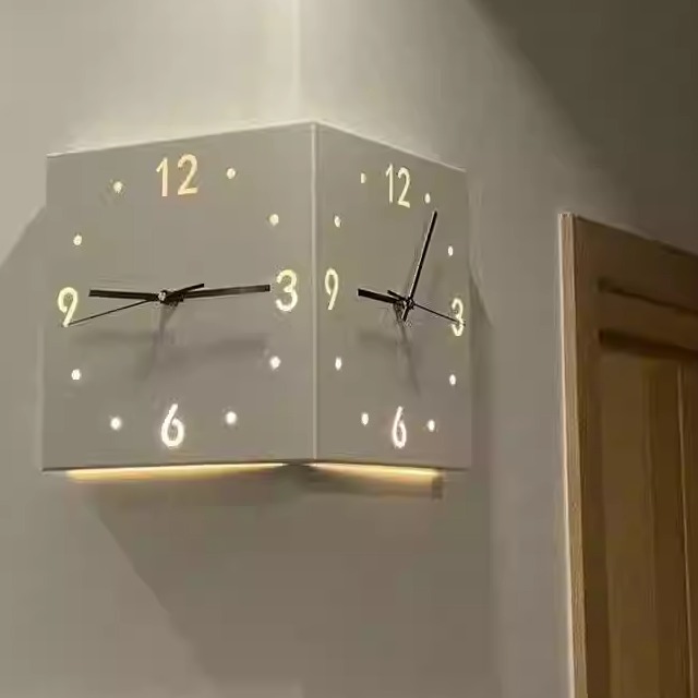 现代风格简约转角挂钟钟静音双面拐角挂钟创意时钟阳角装饰