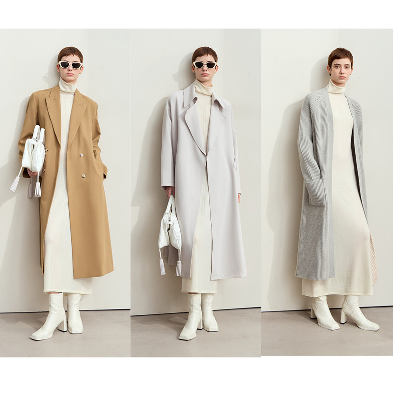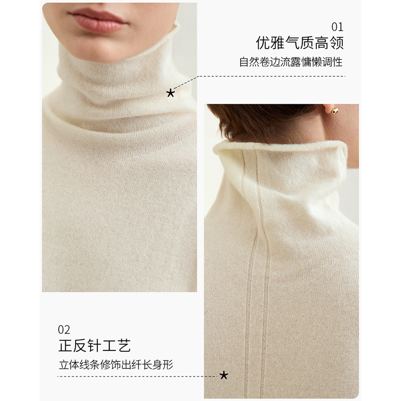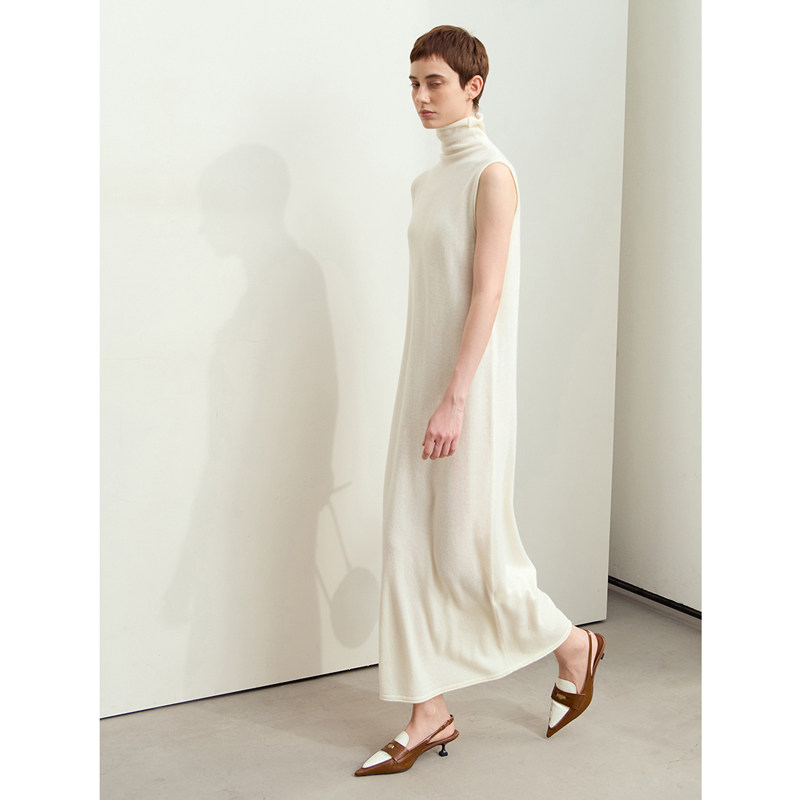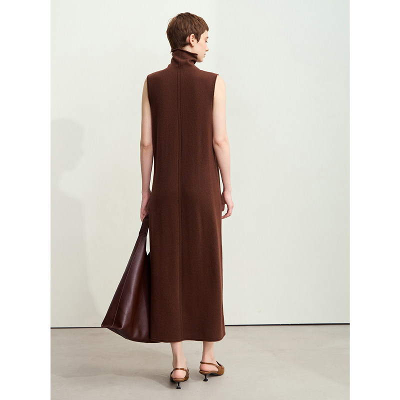 Amii2025冬新款优雅高领无袖卷边羊毛针织连衣裙女长款背心裙子