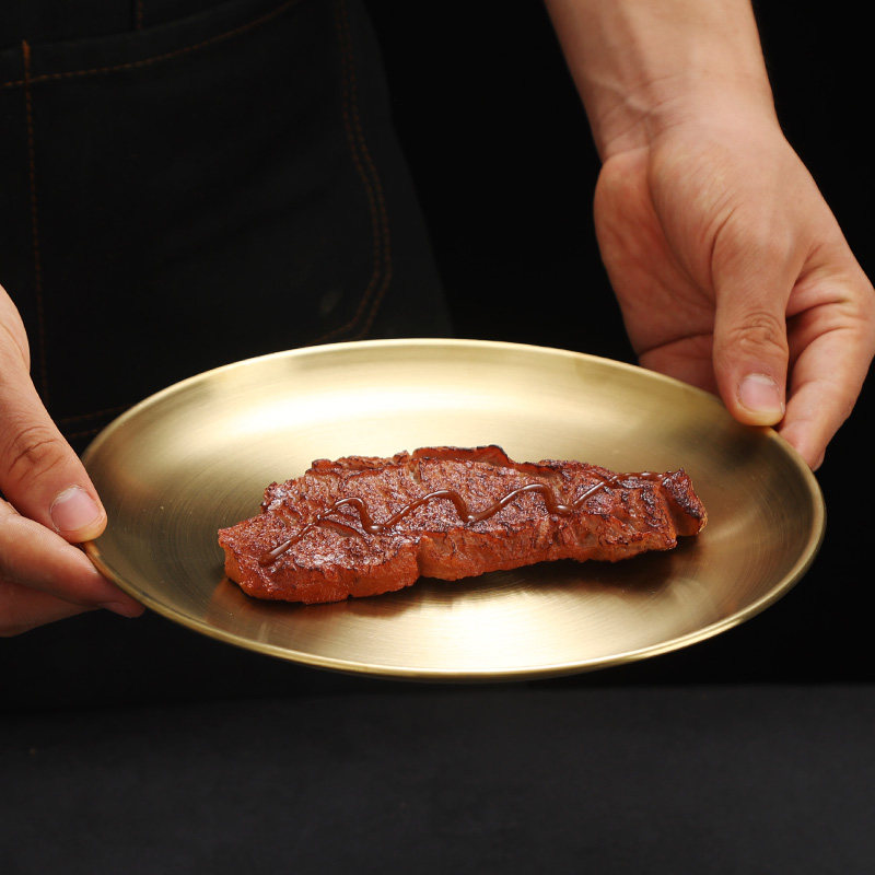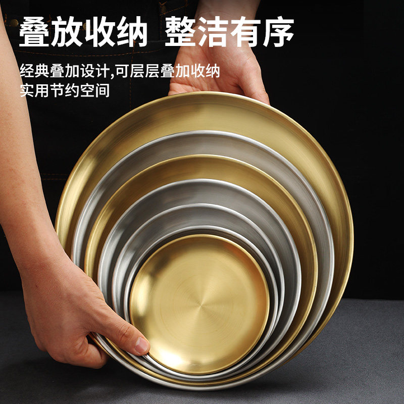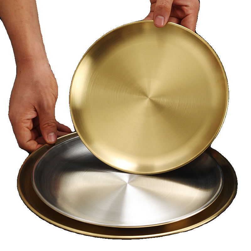 韩式不锈钢加厚圆盘金色咖啡厅托盘水果盘蛋糕盘骨碟菜碟浅盘子