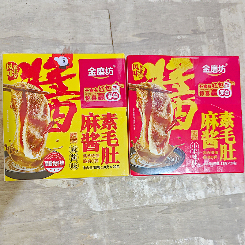 新日期金磨坊麻酱素毛肚18g*60袋盒装魔芋爽麻酱味爆肚脆整箱批发