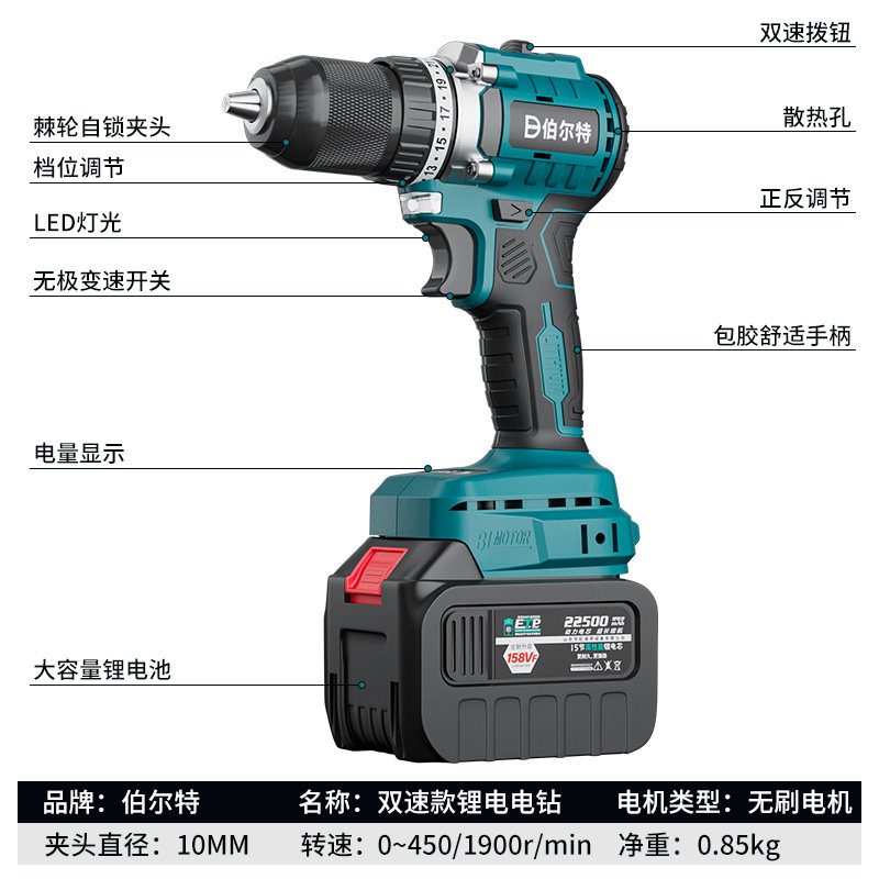 伯尔特MT款电钻手枪钻家用冲击钻无刷锂电手转充电电动工具螺丝刀