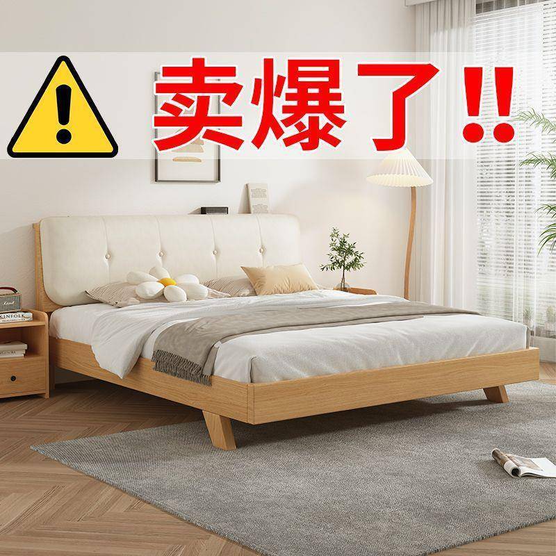 实木床简约现代经济型1.8米软包大床1.5米北欧风双人床1米成人床