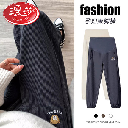 浪莎孕妇裤子春秋季外穿运动裤卫秋冬加绒休闲裤束脚裤长裤春秋装