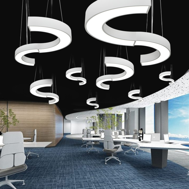 简约led圆弧半圆环形吊灯健身房网咖商场走廊餐厅工业风造型灯具