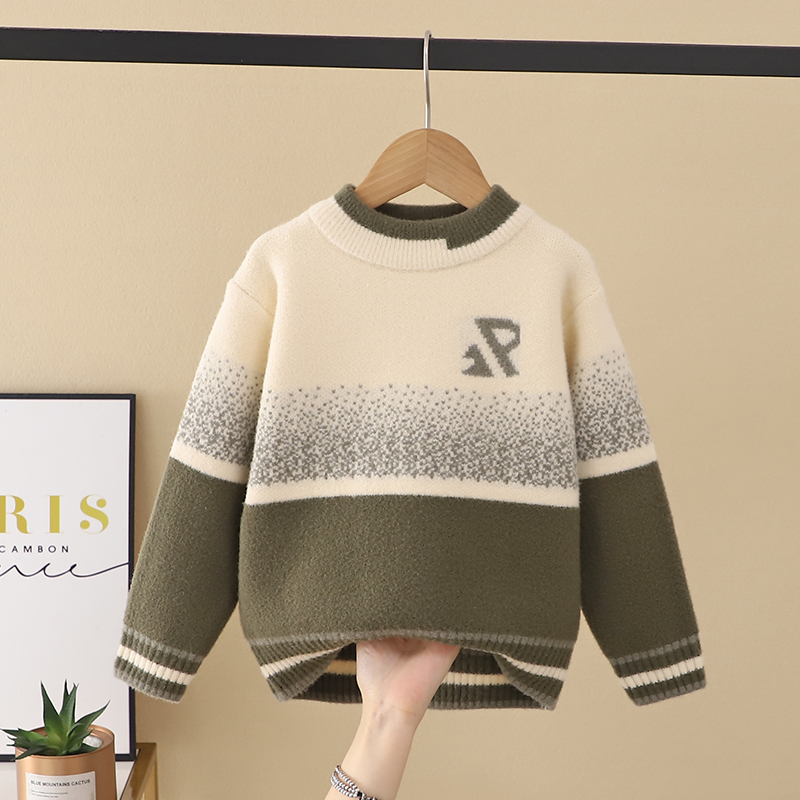 男孩子套头毛衣圆领秋冬季新款中大童针织衫休闲风儿童打底衫男童